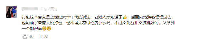 不過也有網友說,現在兩地交流增加,「打包」在新一代香港市民心中不再是禁忌詞。
