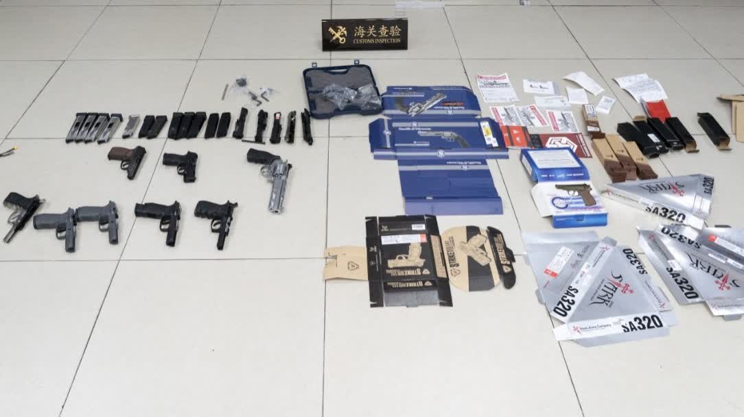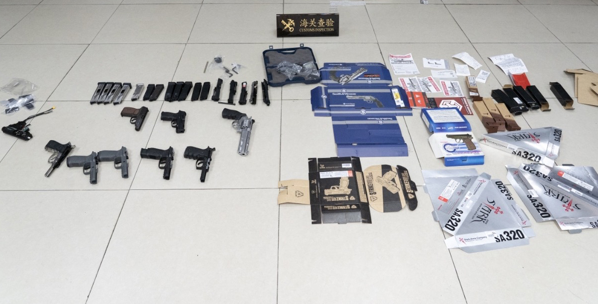 今年3月26日,海關關員在港珠澳大橋珠海口岸進境客車通道巡查時,發現一輛香港單牌車行駛軌跡異常,存在走私嫌疑,遂迅速對其實施布控截查。經檢查,在駕駛員背包內、車輛內共查獲疑似槍支8把、槍支配件22件及專用包裝物等一批。後經鑒定,其中有6把以壓縮氣體為動力的槍支。海關提醒,中國內地對槍支有嚴格的管制制度。各種武器、仿真武器、彈藥及爆炸物品都是禁止進出境物品。