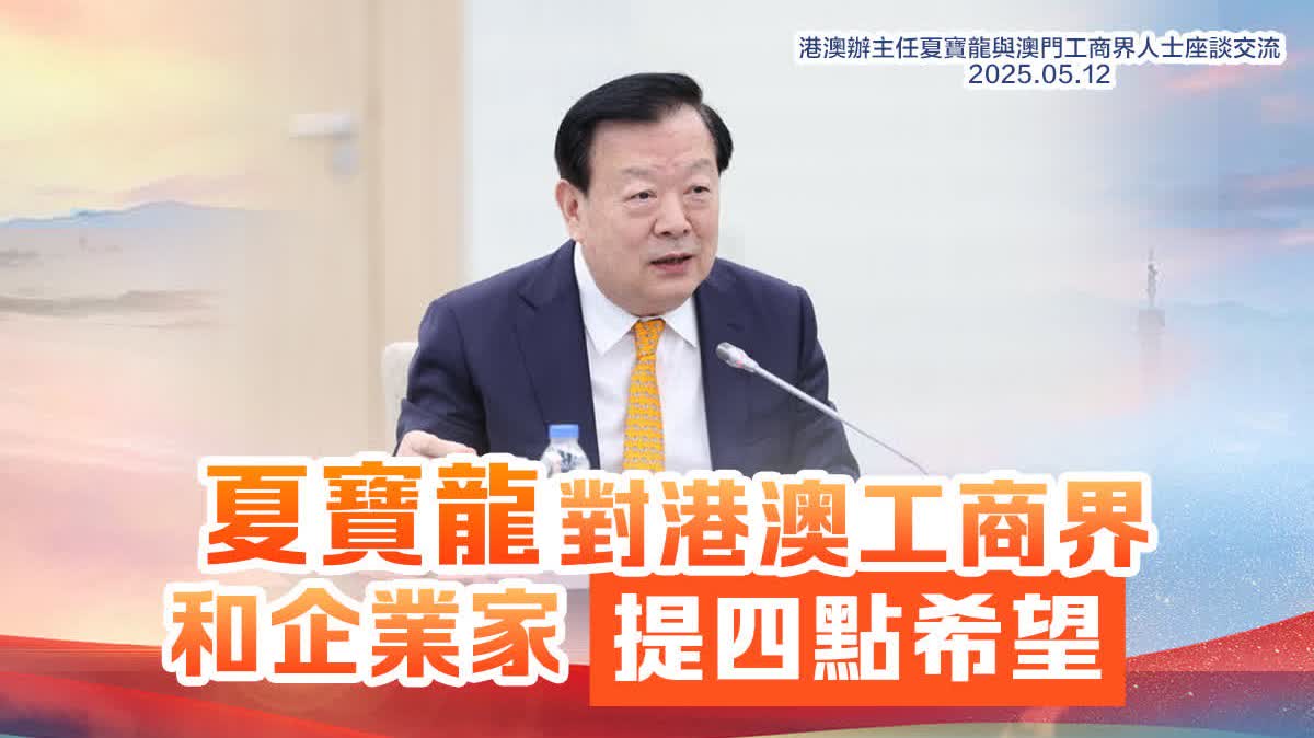 大公文匯全媒體報道,中央港澳工作辦公室、國務院港澳事務辦公室夏寶龍主任在澳門與工商界人士座談,就貫徹落實習近平主席視察澳門重要講話精神,推動港澳發展、助力強國建設深入交流。夏寶龍主任表示,當今世界,開放合作仍是歷史潮流,互利共贏是人心所向;單邊主義、霸凌行徑必將反噬其自身;港澳工商界和企業家作為推動港澳經濟發展的主力軍,立場上要特別清醒、行動上要特別自覺,在風雨洗禮中淬火成鋼;在中華民族的歷史緊要關頭,大家要繼續發揚愛國愛港、愛國愛澳的光榮傳統,共同護航「一國兩制」實踐行穩致遠。
