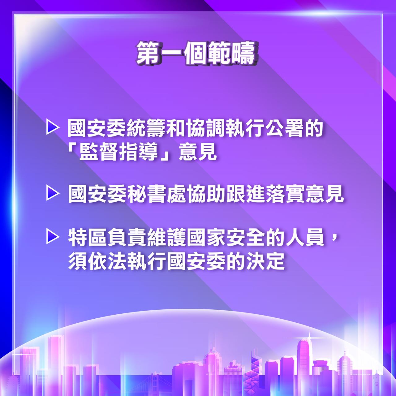 1. 清楚描述香港特區維護國家安全委員會(國安委)及其秘書處在落實公署「監督指導」意見上的角色;以及特區負責維護國家安全的人,須依法執行國安委作出的決定;