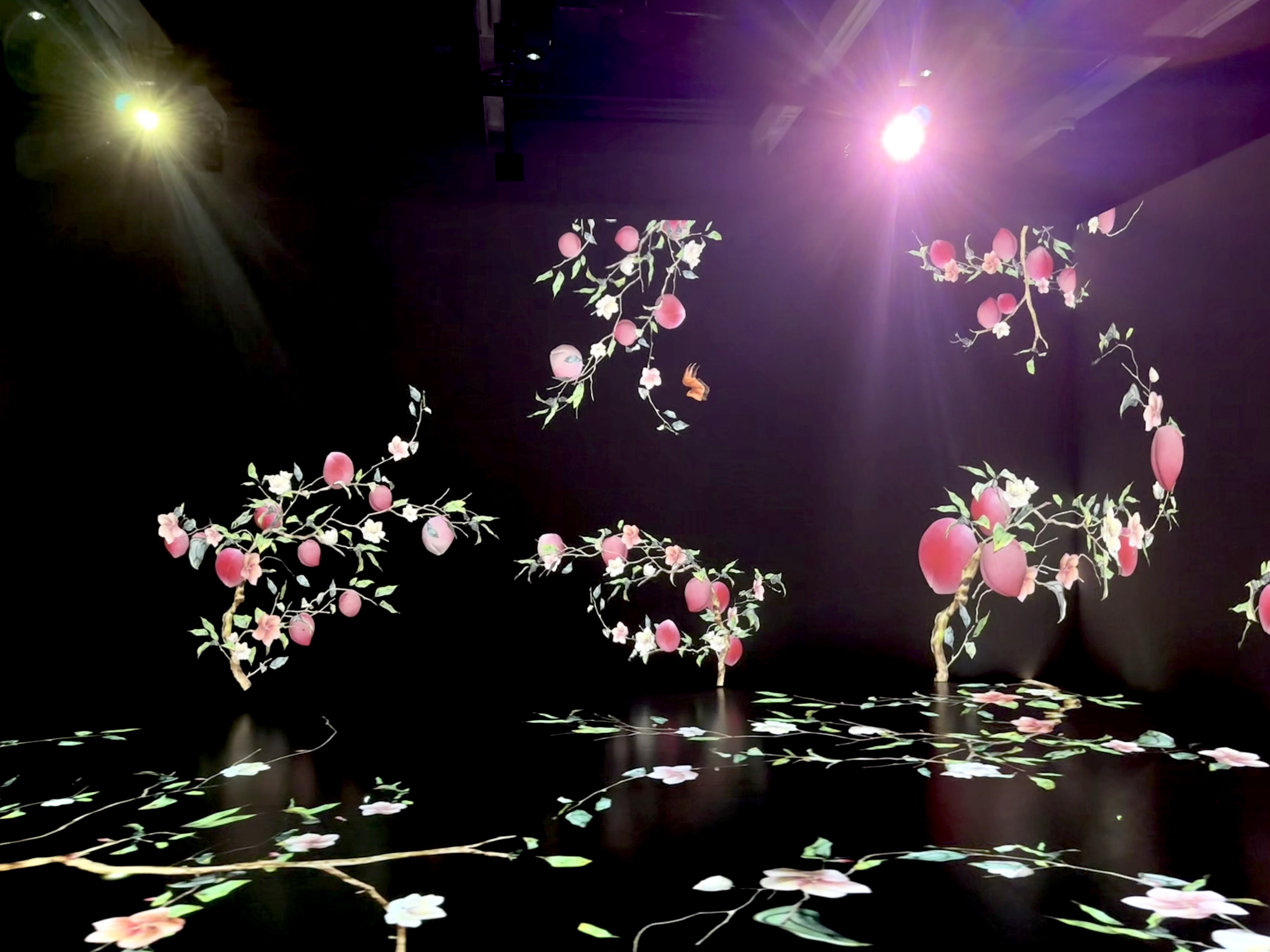 值得關注的是,這些古老花紋在博物館中以現代數碼技術呈現。展覽設七個體驗區域,讓觀眾置身於紋路和色彩之中,沉浸式感受其獨特韻味。從腳下變換不斷的動態圖案,到藻井上展開的多彩景象,傳統紋樣在數碼技術的演繹下煥發新意。觀眾可漫步於織繡紋樣幻化出的錦繡空間,亦可以在互動裝置上親手設計遊魚與飛鳥圖案,為傳統紋樣注入新意,開啟一場穿越時空的創意對話,亦喚起對優秀傳統文化的共鳴。