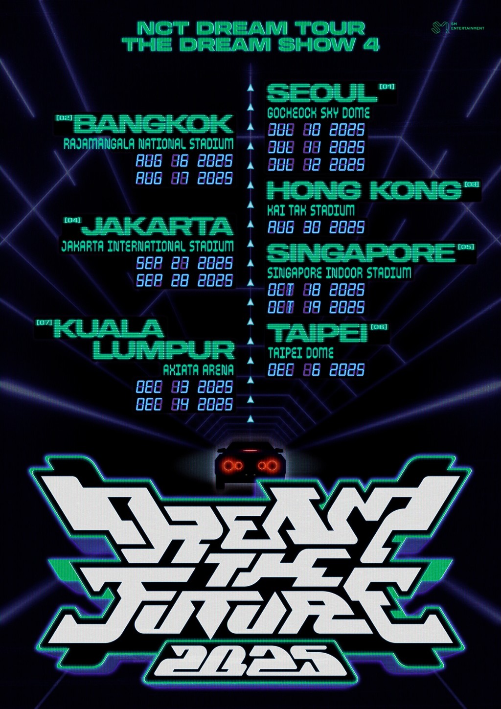 NCT DREAM今午(13日)在社交媒體宣布開展亞洲巡迴演唱會《THE DREAM SHOW 4 : DREAM THE FUTURE》,行程將有7站,以首爾為起點,依次在曼谷、香港、雅加達、吉隆坡、新加坡巡迴,最終為台北站作結。