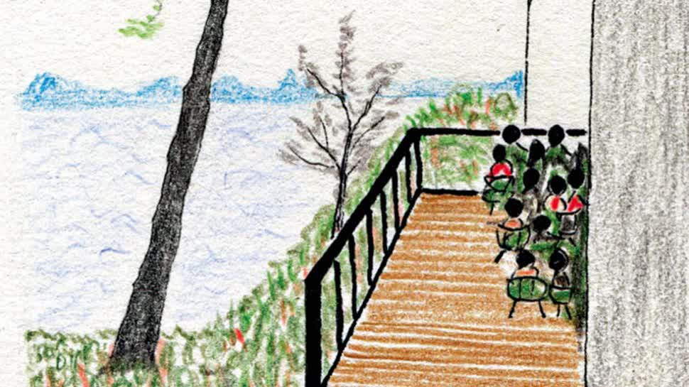 不止一次來白鷺坡書吧,每次選擇窗外走廊面朝大海的小桌,一杯咖啡一本好書,枯坐半晌。