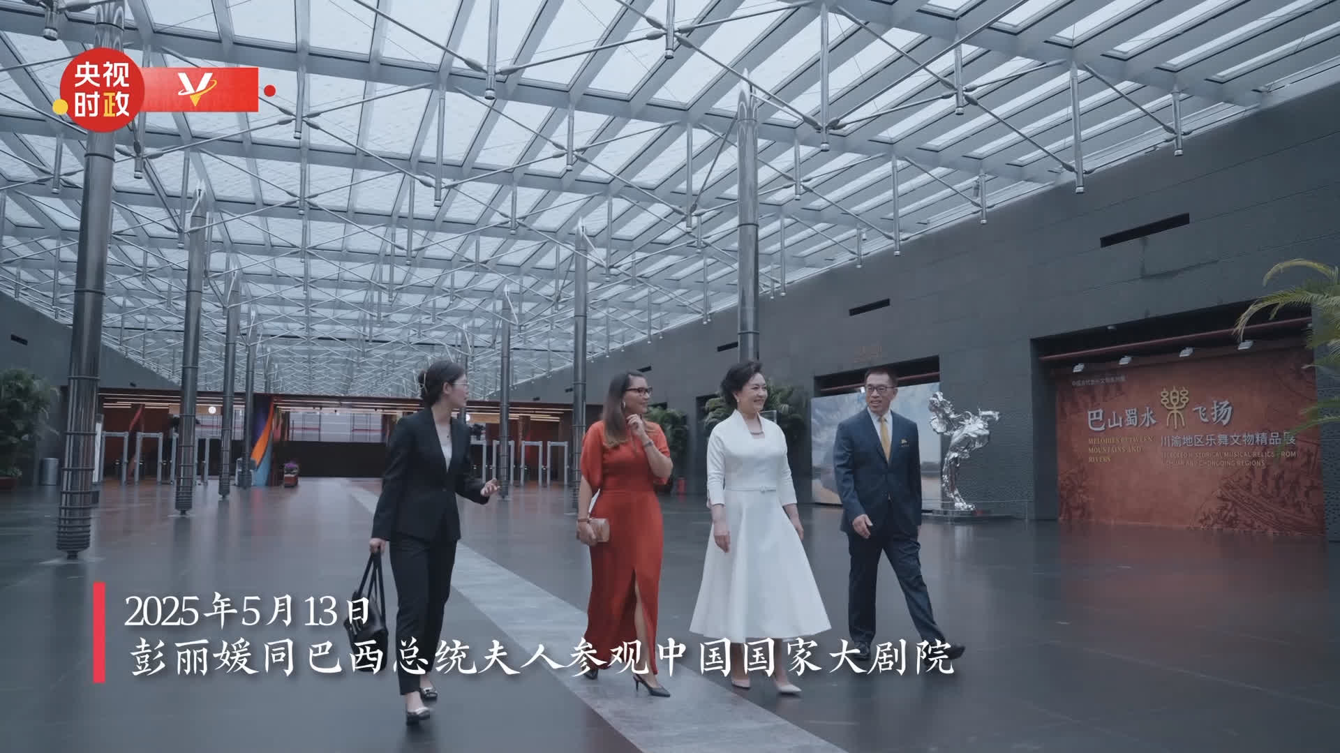 5月13日下午,國家主席習近平夫人彭麗媛和陪同巴西總統盧拉來華進行國事訪問的總統夫人羅桑熱拉參觀中國國家大劇院。