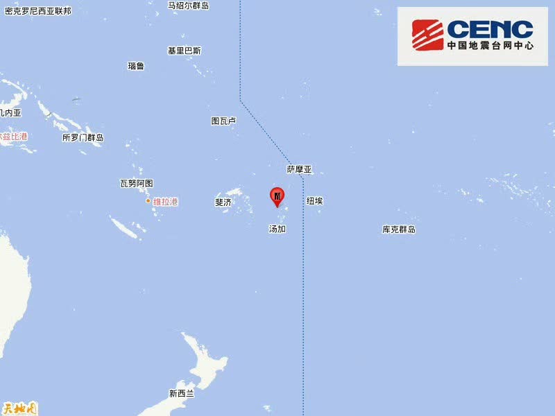 據央視新聞報道,中國地震台網正式測定:05月14日12時15分,在湯加群島(南緯18.70度,西經175.10度)發生6.4級地震,震源深度240公里。