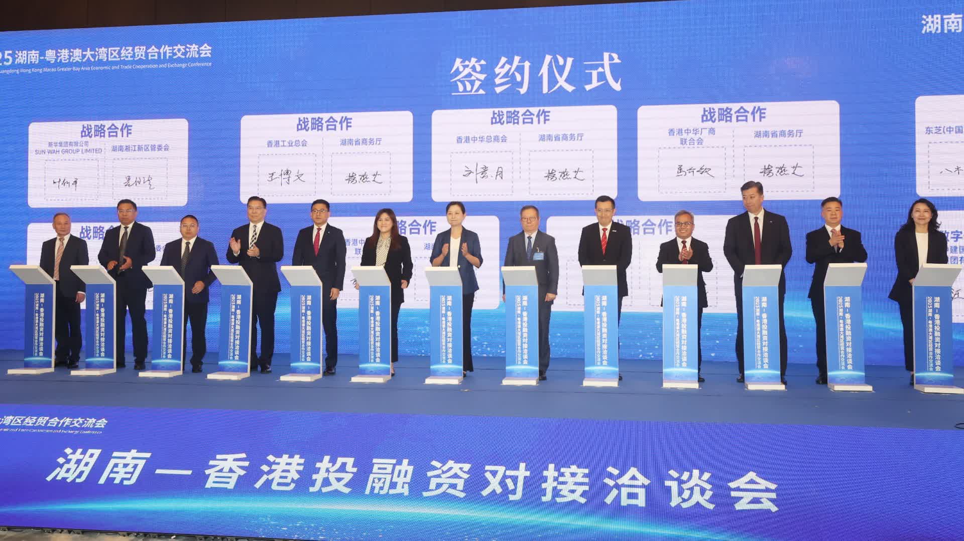 湖南省省長毛偉明講話時回顧了湘港合作歷程,指出香港是湖南境外第一大貿易夥伴、融資的第一選擇地和湖南入境游第一大客源地。他提出,希望湘港聚焦高質量科產融合創新,加強產業強強合作、優勢互補,推動長沙全球研發中心城市、「4+4 科創工程」建設;聚焦高質效金融供需對接,搭建多元融資橋梁,創新金融合作模式;聚焦高水平開放合作共贏,共同拓展國際經貿市場、融入全球供應網絡;聚焦高頻次文旅交融互動,推動旅遊線路互聯互通、旅遊服務標準對接、旅遊資源合作開發。