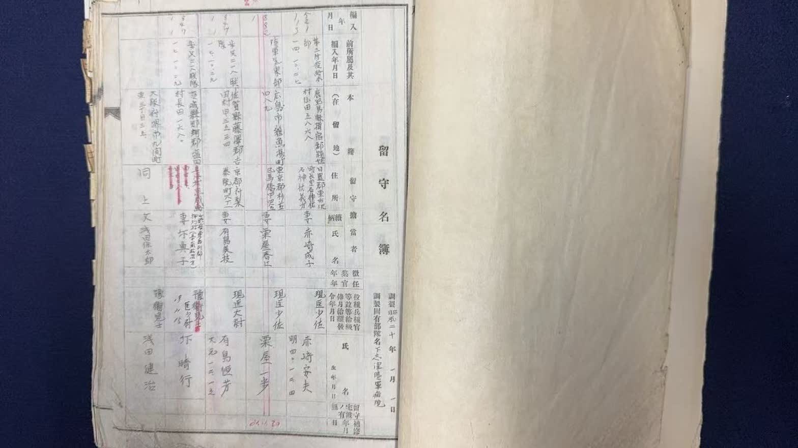 留守名簿屬於檔案文件,其中包含當時日軍部隊成員的姓名、出生日期、戶籍、職種、兵種等信息。