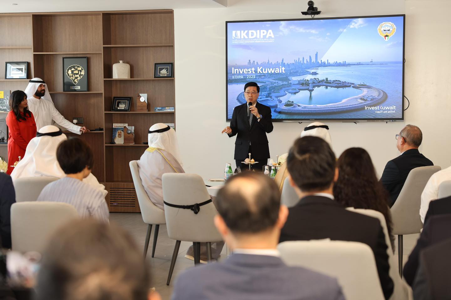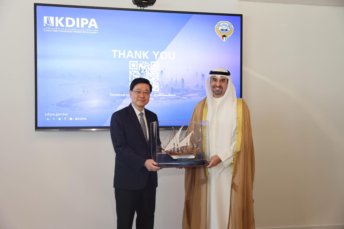 李家超指出,香港作為國際金融中心,在綠色金融領域發展迅速,去年香港安排的綠色與可持續債券總額達430億美元,規模冠絕亞洲市場,可為科威特發展綠色能源等新興產業提供有力支持。同時,雙方在證券市場、資產及財富管理等金融服務領域的合作前景亦十分廣闊。此外,香港也是國際創科中心,樂意與科威特直接投資促進局探討如何攜手推動科技發展與創新合作。