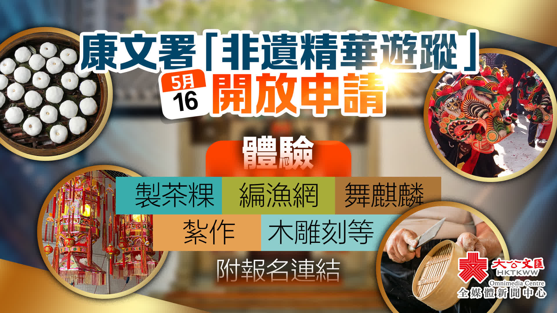 另外,非遺辦亦與香港旅遊發展局合作舉辦供境外旅客參加的「非遺精華遊蹤」油尖旺區考察活動,詳情稍後公布。