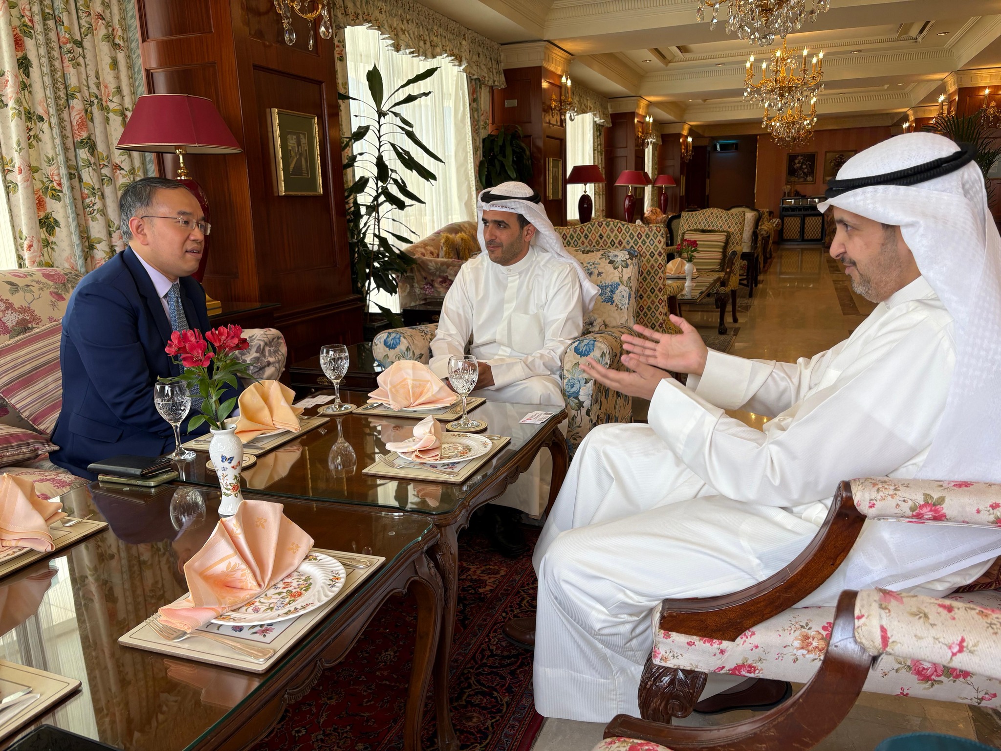 許正宇指,經Mohamed介紹,他認識了科威特國家銀行負責國際企業銀行部的高級副總裁Fahad B. Al-Marzouq。Fahad對AI和區塊鏈應用、Web3等很關注,許正宇介紹香港金融機構應用AI的比率是38%,遠高於全球平均的26%。此外,香港正積極開拓貴金屬和大宗商品市場,其中多個獲倫敦金屬交易所批准的認可倉庫今年7月起會陸續開始營運。香港的金融發展多元化,他們的銀行來港開展業務,更可藉助香港的獨有位置,覆蓋大灣區的需要。