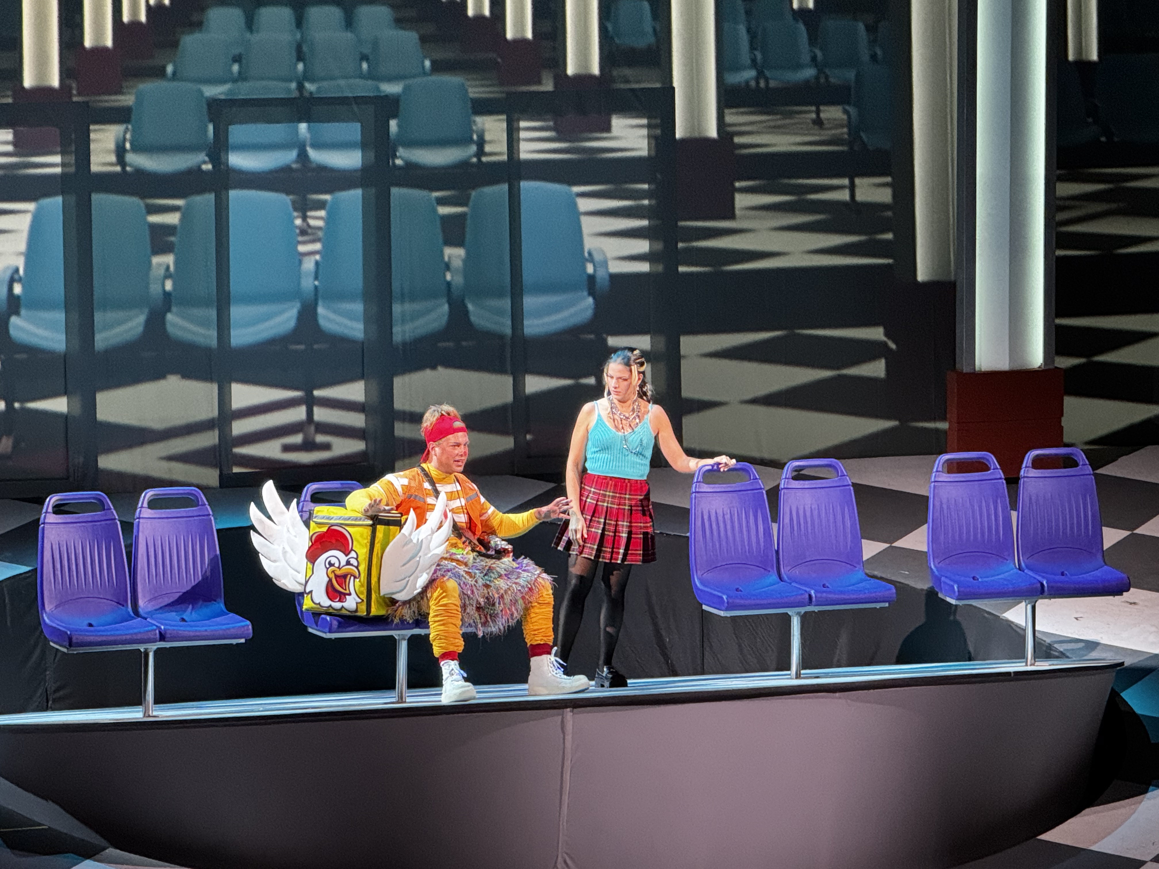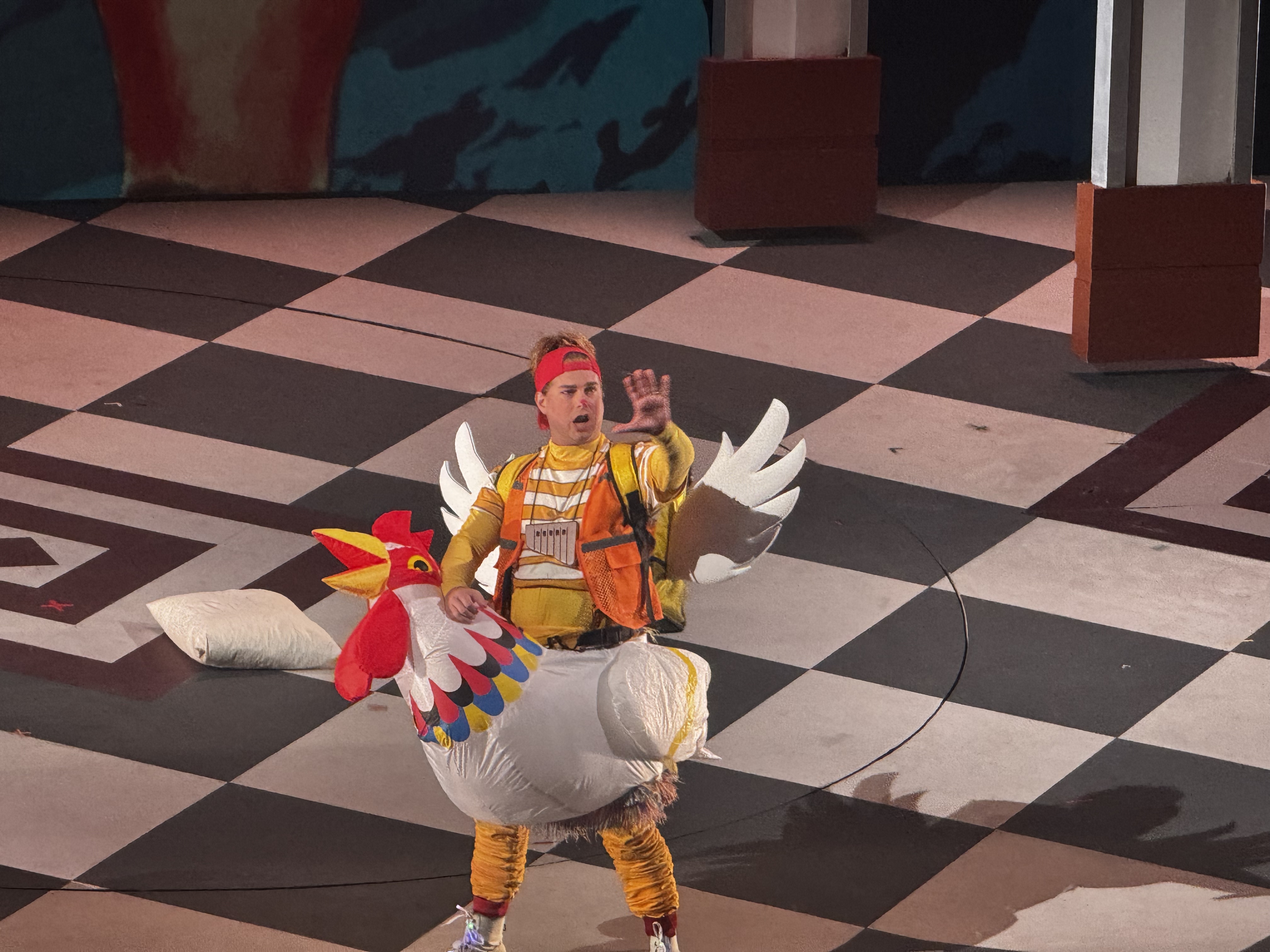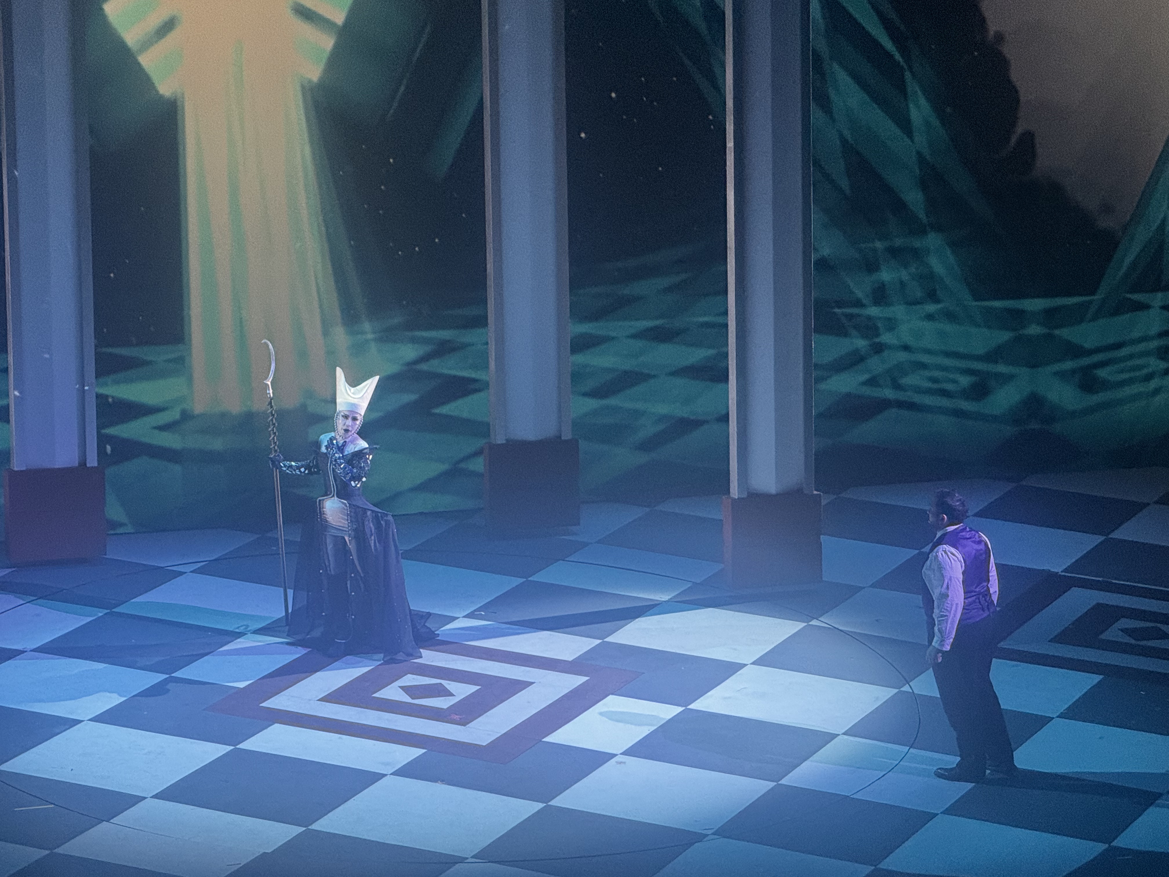開場後,觀眾們很快融入了現代化的舞台氛圍——王子身穿西服馬甲,侍女角色搖身一變為空姐的形象,舞台色彩鮮艷明媚。劇情也適應了現代生活,例如給捕鳥人的角色加入了「外賣送炸雞」、踩滑輪車的日常橋段,台詞詼諧幽默,令觀眾忍俊不禁。旋轉輪盤式的舞台機關亦令人驚艷。