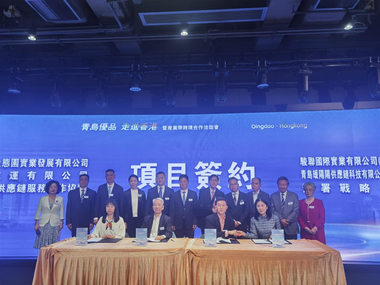 總會推動搭建的暖陽陽供應鏈平台聯合香港廣昌隆集團、香港駿聯國際實業正式簽約。此次洽談會旨在搭建高效對接平台,助力青島優質外貿企業深度融入香港市場,以香港為窗口輻射全球,推動兩地在經貿領域實現全方位、多層次、寬領域的合作共贏。