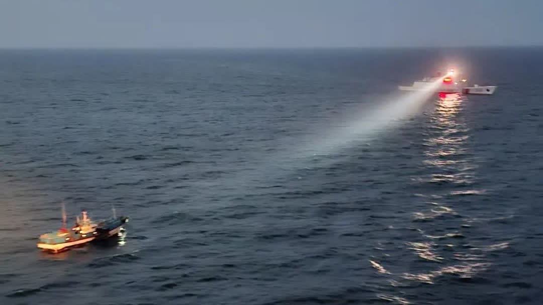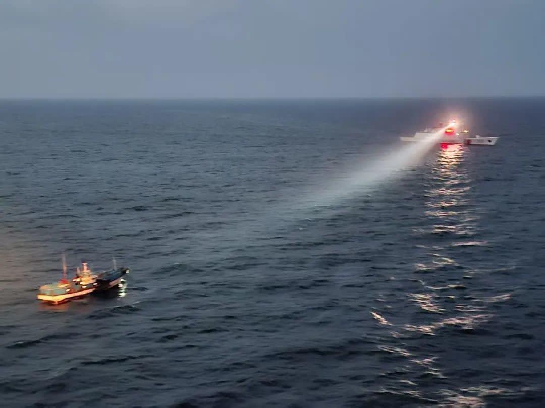 18時24分,「達飛格陵蘭島」「濱海527」輪相繼抵達事發水域,「達飛格陵蘭島」輪船長迅速與遇險漁船建立聯繫,指導遇險漁民做好救助準備工作,同時釋放救助艇前往救助。19時10分,「中國海警**」抵達事發水域,迅速釋放救助快艇靠近遇險漁船,轉移遇險漁民。19時20分左右,遇險漁船8名漁民全部安全轉移至「中國海警**」船上。至此,該險情處置圓滿結束,整個搜救過程中,浙江省海上搜救中心共協調各類救助船艇18艘,歷時2小時迅速成功救助8名外籍漁民。
