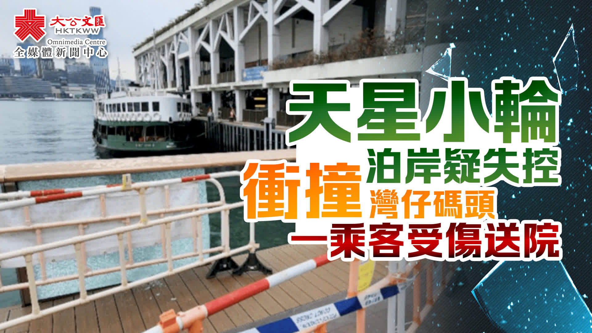 大公文匯全媒體報道,今日(17日)下午4時許,灣仔碼頭發生了一起渡輪撞岸事故。一艘由尖沙咀駛往灣仔的天星小輪在靠泊碼頭過程中突現異常,船體失控直撞擊海濱長廊強化玻璃護欄,導致船上一名男乘客受傷,由救護車緊急送往律敦治醫院接受治療。