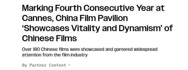 據央視新聞報道,當地時間5月15日,美國《綜藝》雜誌發表文章,題為:亮相戛納國際電影節,中國電影聯合展台「展現中國電影的生機與活力」。