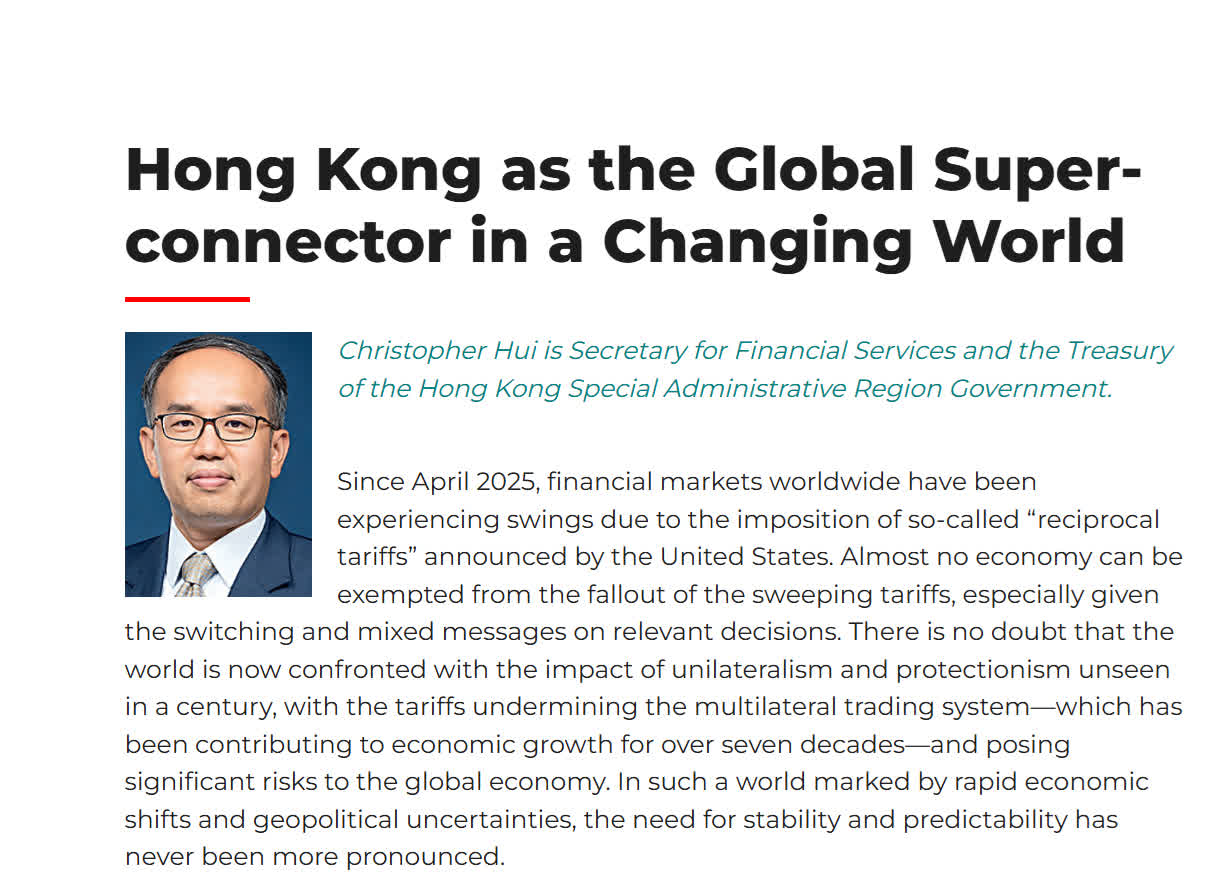 大公文匯網報道,財經事務及庫務局局長許正宇於國際關係和可持續發展中心(CIRSD)剛出版的Horizons期刊(2025春季號)發表署名文章。