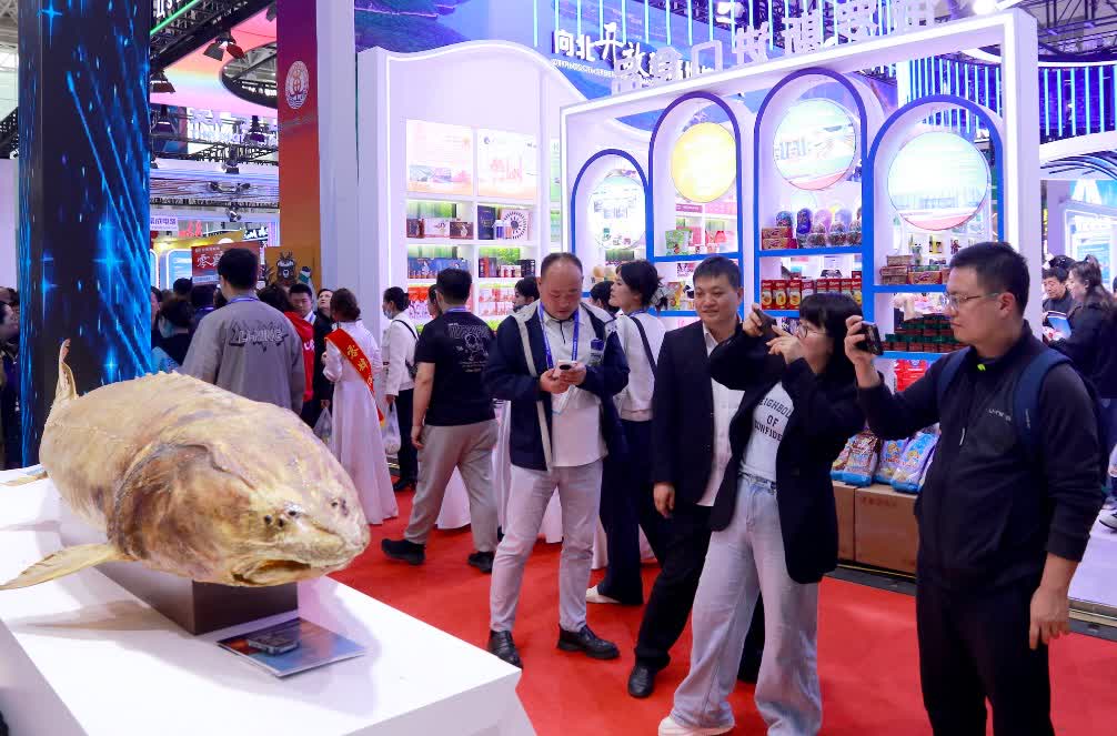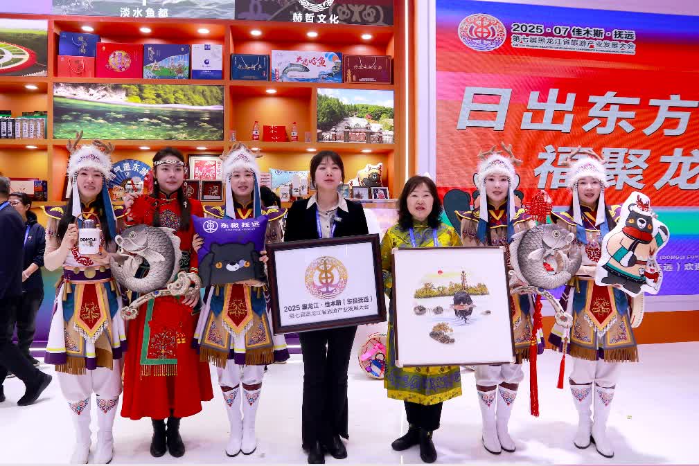 赫哲族藝人指尖翻飛,魚皮畫上躍動着《烏蘇裏船歌》的粼粼波光;雪地摩托的引擎轟鳴,裹挾着極地寒風的銳意;蔓越莓的果香氤氳,與黑土地的麥浪共釀甜蜜……在佳木斯展區,「新」風鋪面,活力滿滿。