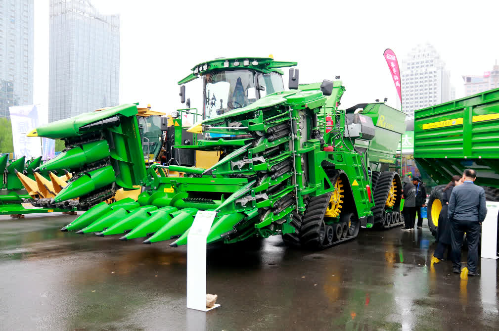 邁入哈洽會大門,一台4米多高的「綠巨人」吸引了不少國外客商駐足停留。這款霸氣的自走履帶式鮮食玉米收穫機來自湯原縣振華機械製造有限公司。