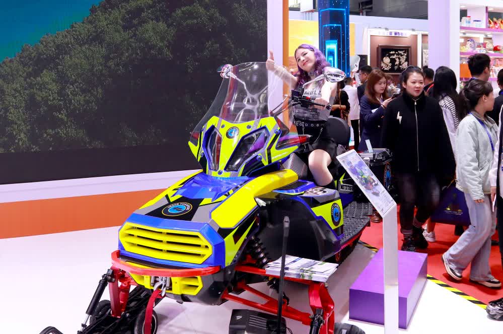 「這摩托也太帥了!我能試試嗎?」一位參展商被展區內紅藍塗裝的雪地摩托深深吸引住。只見黑色履帶上密布防滑釘,寬大的車胎彰顯着極地適應性。「這款F9-500CC雪地摩托車能拖載300公斤雪爬犁,最高時速可達80至120公里,自動擋駕駛簡單又方便。」隨着同江赫哲戰騎實業有限公司董事長付春生的介紹,又一群中亞客商圍觀詢問起來。