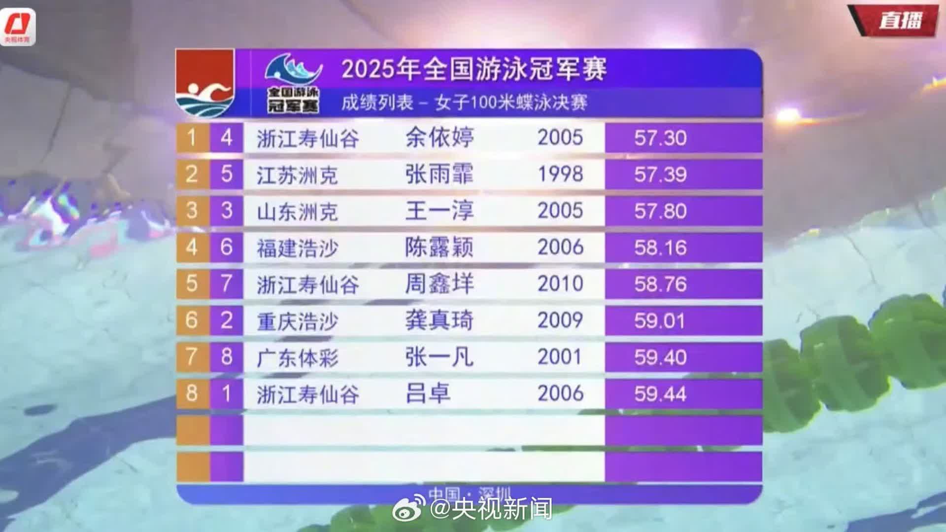 關鍵詞:游泳蝶泳余依婷張雨霏