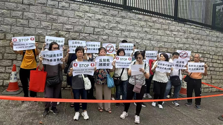 在場市民呼叫「反制裁護國安,支持特區政府維護香港法治,強烈譴責美國政府干預香港事務,反對美國式雙標,法治正義必勝」等口號,表達其心聲。據悉,有20多人前來參與請願,提到香港特別行政區事務,屬於中國內政事務,故不理解與美國有何關係,為何要指手畫腳。