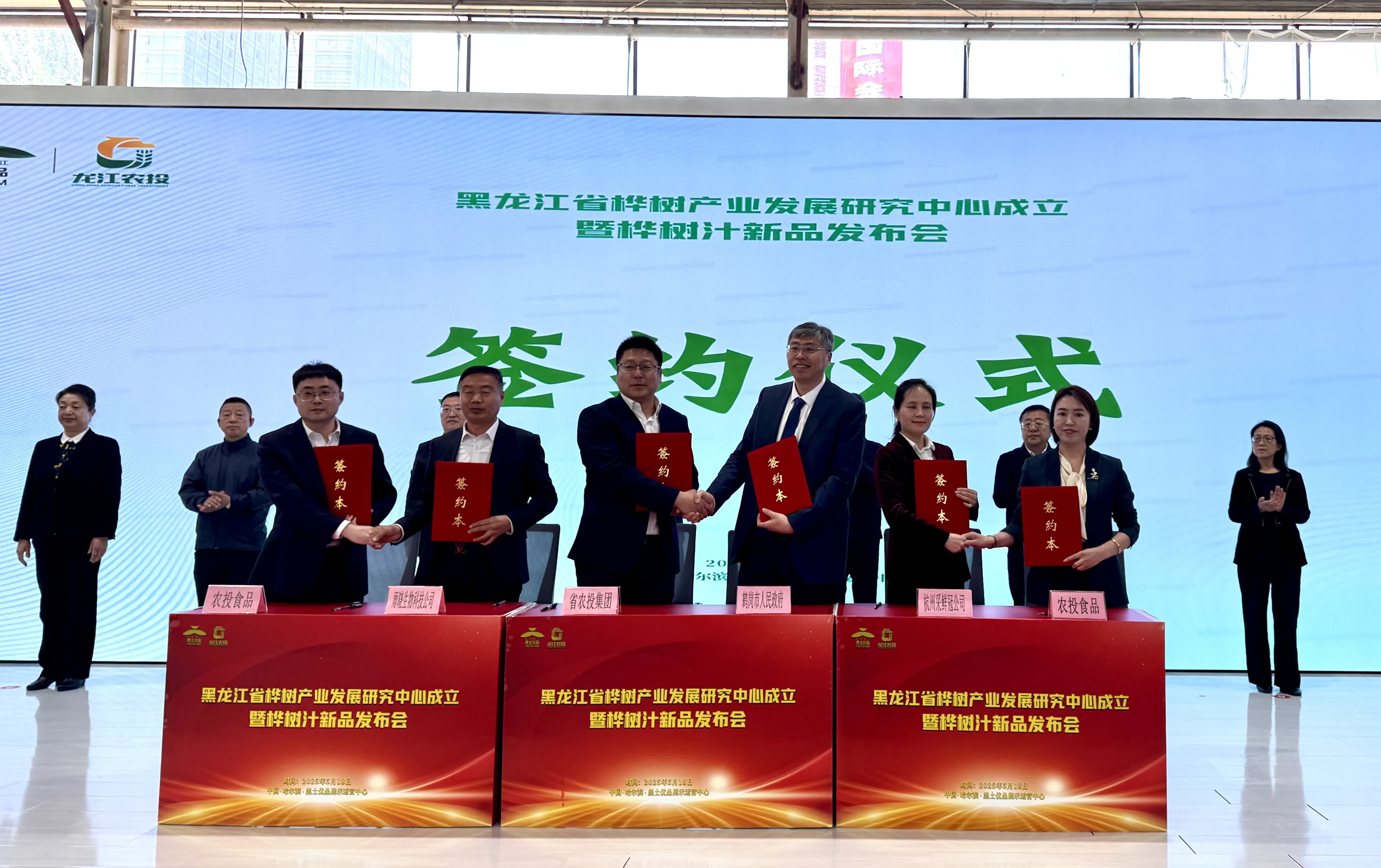 黑龍江省國資委、省工信廳、省教育廳、省農業農村廳、省林草局、省農業投資集團等領導共同為「黑龍江省樺樹產業發展研究中心」揭牌。揭牌儀式後,農投集團與鶴崗市人民政府簽署戰略合作協議,農投食品集團分別與黑龍江省雨曉生物科技公司、杭州採鮮冠食品開發有限公司簽訂合作協議。