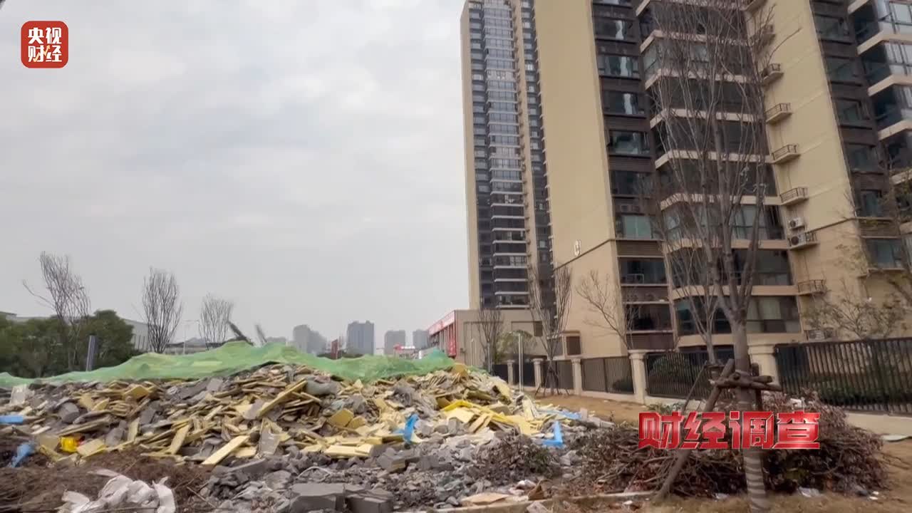 仔細查看,在地塊的邊緣可以看到不少大小不一的水泥塊和磚渣。隨後,記者扒開了覆土層,土層下面水泥塊、鋼筋等建築垃圾隨處可見。