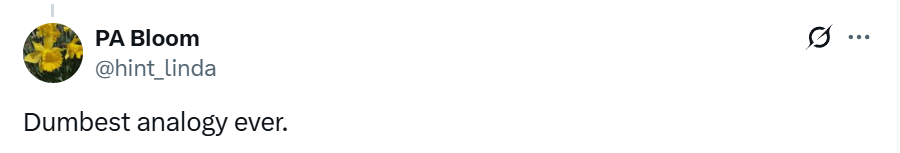 貝森特的言論在社交平台X上引發了網友爭議,有網友表示,「最愚蠢的類比」。