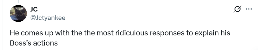 還有網友說,「他想出了最荒謬的回答來解釋他老闆的行為」。