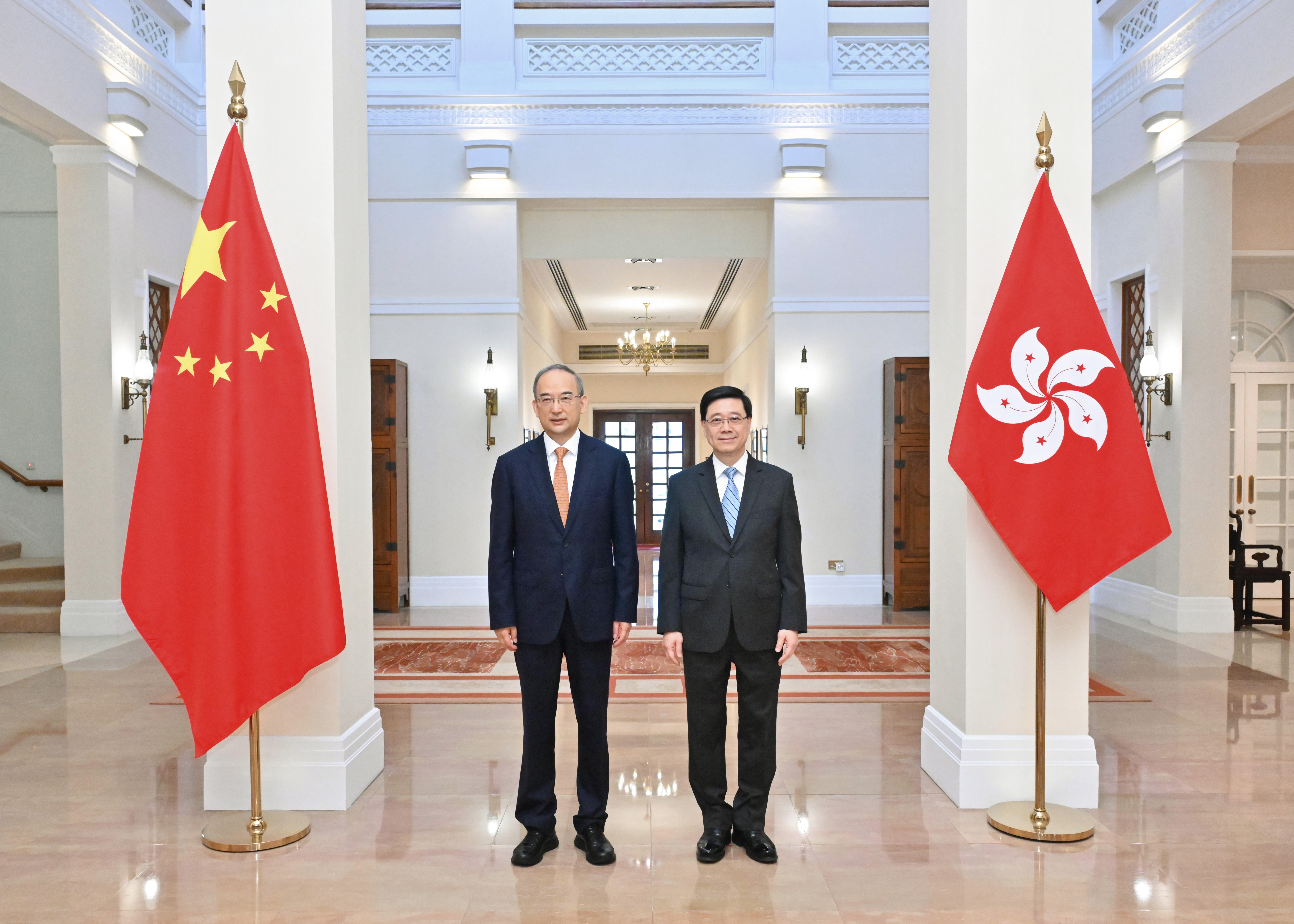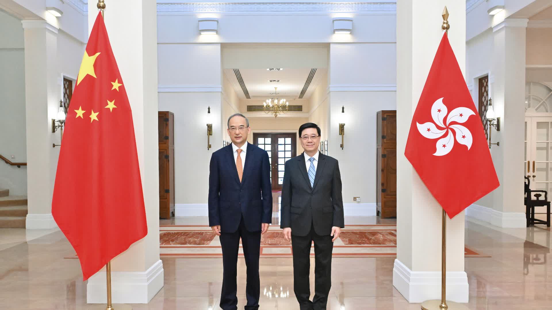 大公文匯全媒體報道,行政長官李家超今日(19日)在禮賓府與吉林省委書記黃強會面,就兩地合作和人文往來交流意見。署理政制及內地事務局局長胡健民和行政長官辦公室主任葉文娟亦有出席。