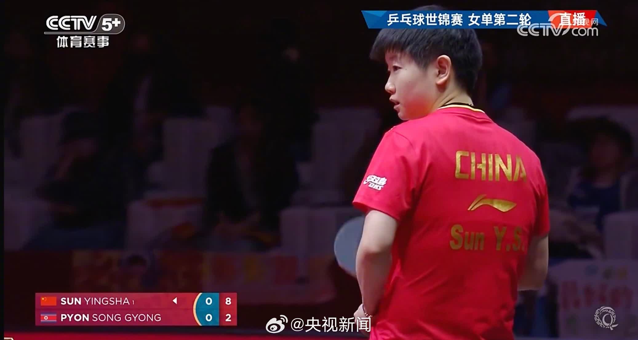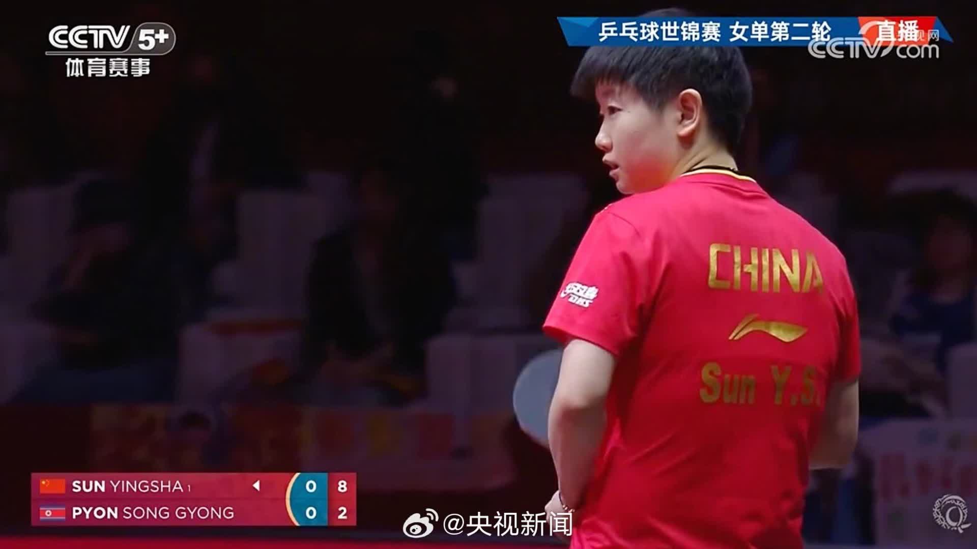 在女單1/32決賽中,孫穎莎4比0戰勝朝鮮選手邊松景,比分:11-2,11-5,11-9,11-4。