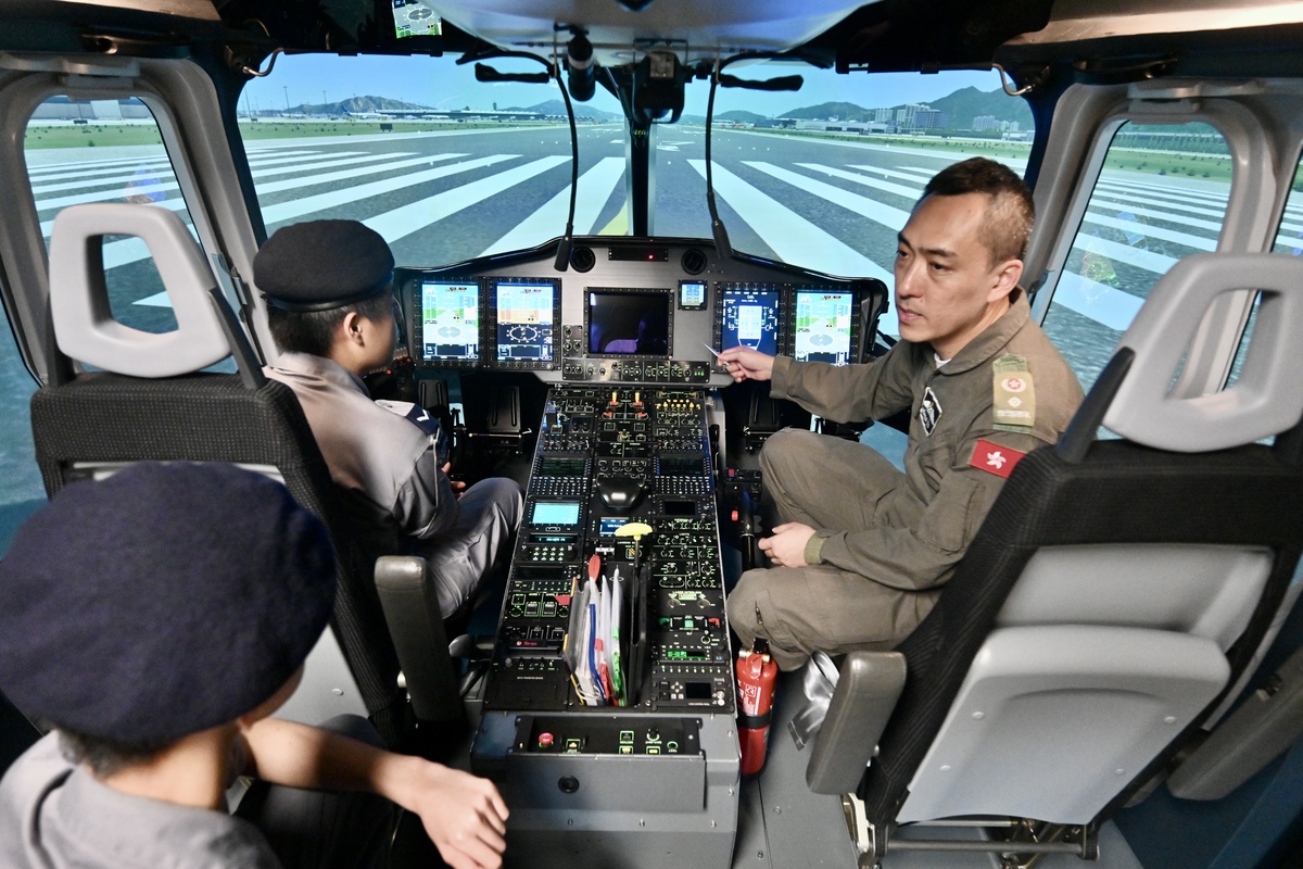 此外,航青團團員會獲安排參觀飛行服務隊總部,並有機會獲選參與專業的飛行模擬器訓練。飛行服務隊署理高級機師余海斌指出,這樣可讓團員近距離接觸部門的直升機、定翼機,同時也更實際地認識部門的工作。
