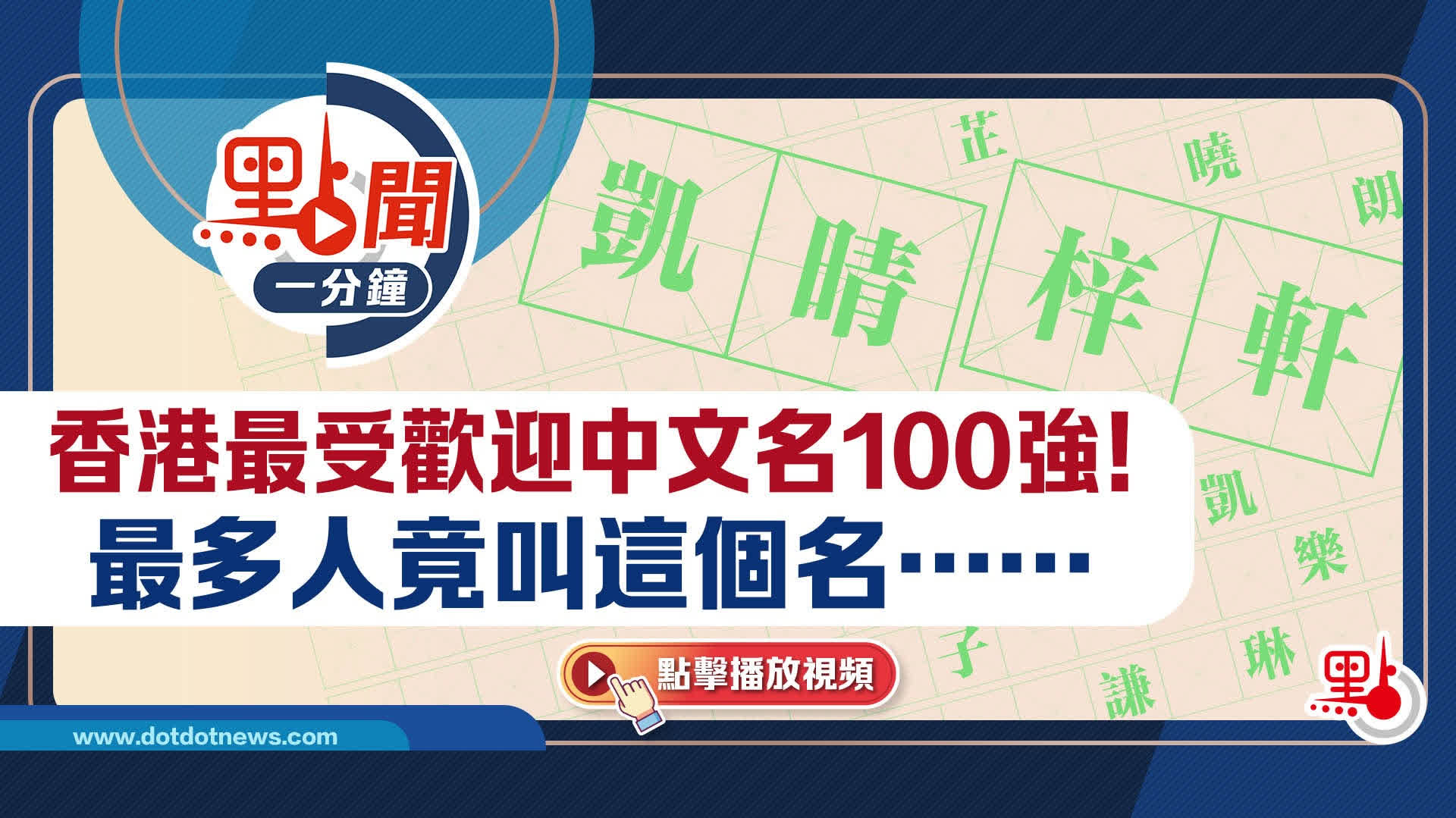 主打為父母提供取名靈感的網站「NameChef」整理了目前香港熱門中文名字排行榜前100位,女子組的榜首由「凱晴」奪得,第2至5名依次為「芷晴」、「曉晴」、「子晴」以及「凱琳」,新手爸媽似乎對「晴」字情有獨鍾。至於男子組第一名則是「梓軒」,其後父母鍾愛的4個名字依次為「宇軒」、「子謙」、「樂軒」和「子朗」,「子」字和「軒」字都是給男生命名的大熱門。