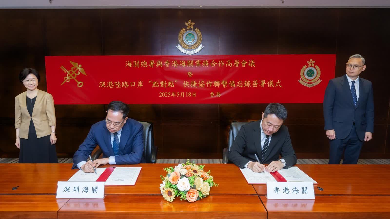 會後,在孫梅君和署理保安局局長卓孝業見證下,陳子達和深圳海關關長鄭巨剛簽署《香港海關與深圳海關深港陸路口岸「點對點」快捷協作聯繫備忘錄》。備忘錄的簽訂進一步加強兩地海關陸路口岸的信息共享及協調機制,提升深港人流和物流的通關效率。