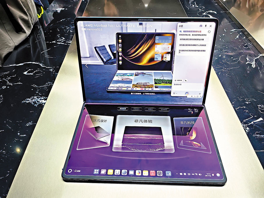 「太酷了,八個手指同時放在屏幕上就能調出來虛擬鍵盤!」發布會結束後,鴻蒙電腦體驗區人氣爆棚。據工作人員介紹,華為MateBook Fold非凡大師搭載鴻蒙操作系統5,支持分布式軟總線全場景互聯,實現160MB/s超速率、4倍多並發連接能力。香港文匯報記者實際操作時,鴻蒙系統的流暢性令人眼前一亮,多任務切換毫無卡頓,滑動操作跟手感極佳。開啟分屏模式後,可同時運行多個應用,如左側查看資料、右側進行文檔撰寫,適配金融分析、方案展示等場景,大幅提升辦公效率。不同手勢還能開啟不同功能,例如「三指拋甩窗口流轉、五指張開瀑布屏瀏覽、八指輕點調起虛擬鍵盤」等。