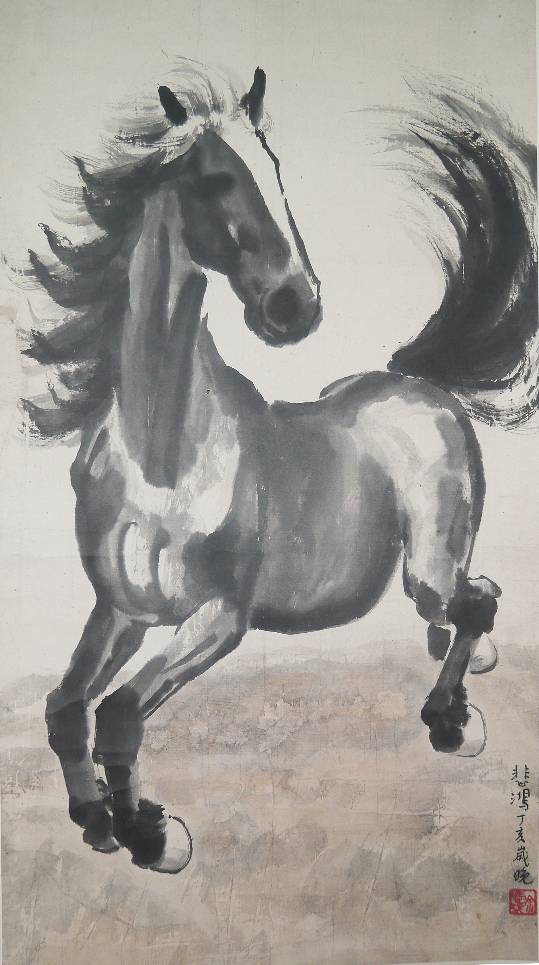 第一篇章「宗師悲鴻」精選26件代表作,涵蓋奔馬系列、人物肖像及花鳥畫,展現徐悲鴻融匯中西的藝術革新。第二篇章「家國情懷」聚焦抗戰主題創作,除《愚公移山》版畫及創作手稿等經典外,還將展出《論民族精神》手稿。第三篇章「薪火相傳」匯聚戴澤、候一民、李斛、姚有多、楊先讓、黃養輝等徐氏弟子的66餘件作品。第四篇章「藝苑新枝」呈現了中青年藝術家對徐悲鴻精神的當代詮釋,何軍委的《徐悲鴻像》,劉銘的《唐人詩意》,高宏的《樺林映雪》,董慧的《紫氣東來》,以現代繪畫筆觸重構傳統意象,彰顯藝術傳承的生生不息。