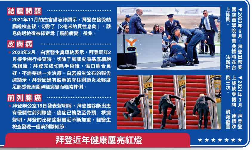 此次拜登確診前列腺癌引發部分共和黨人質疑,認為拜登健康惡化早有跡象,卻被隱瞞至去年選戰中途才不得已退選。