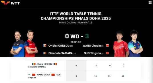 大公文匯網報道,中國隊組合王楚欽/孫穎莎原計劃將於當地時間5月20日,在多哈世乒賽混雙1/8決賽中對陣羅馬尼亞隊組合。19日,羅馬尼亞隊組合中的女子選手伊莉莎貝塔·薩馬拉因傷退出女單賽事,世乒賽官方賽程顯示,羅馬尼亞隊這對組合退出混雙賽事,王楚欽/孫穎莎以3:0的成績直接晉級八強。