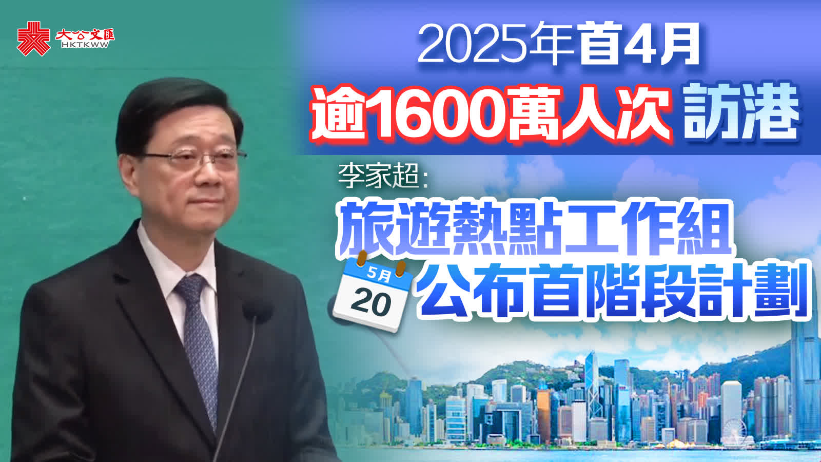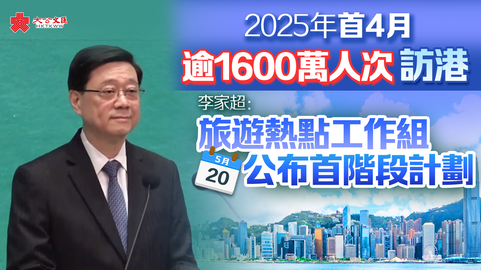 大公文匯全媒體報道,行政長官李家超今日(20日)出席行政會議前見記者。李家超表示,在特區政府及各行業,包括旅遊、餐飲、酒店、零售等行業的共同努力下,加上香港成功舉辦多項盛事,訪港旅客數字節節上升。今年首4個月,訪港旅客總數達1,600萬人次,同比增長10%。
