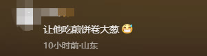 吉林的網友說:來吧,請他吃大蔥蘸大醬。