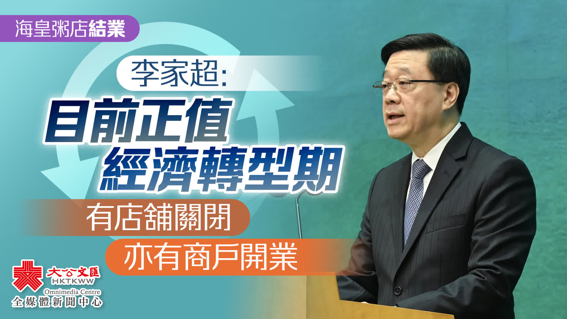 大公文匯全媒體報道,海皇粥店早前宣布全線結業並終止僱傭合約。行政長官李家超今日(20日)出席行政會議前回應記者提問表示,目前經濟正值轉型期,出現新的需求及喜好,有些店舖關閉,亦有不少商戶開業。李家超說,對於應對經濟轉型期充滿信心,強調要保持競爭力並自我完善。