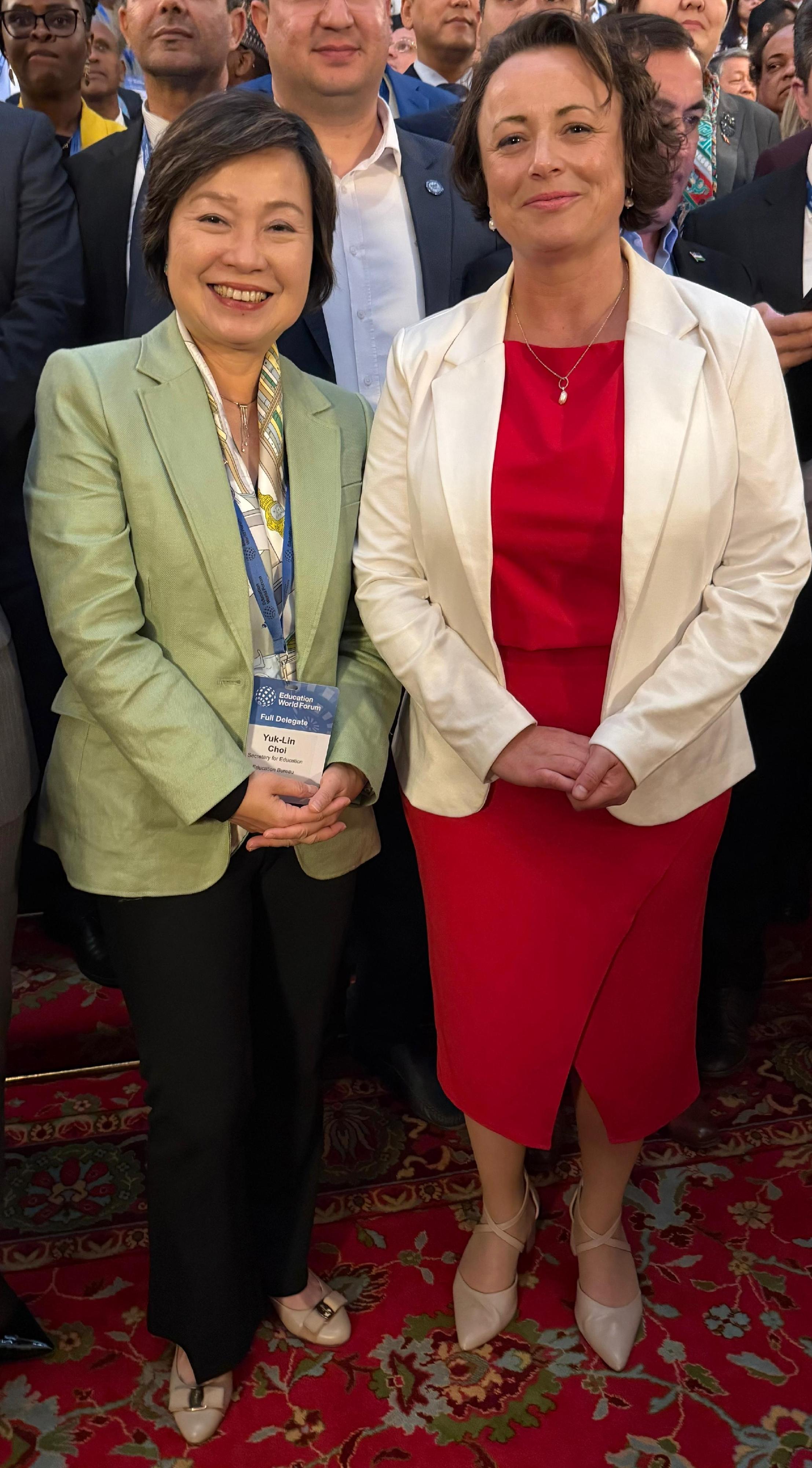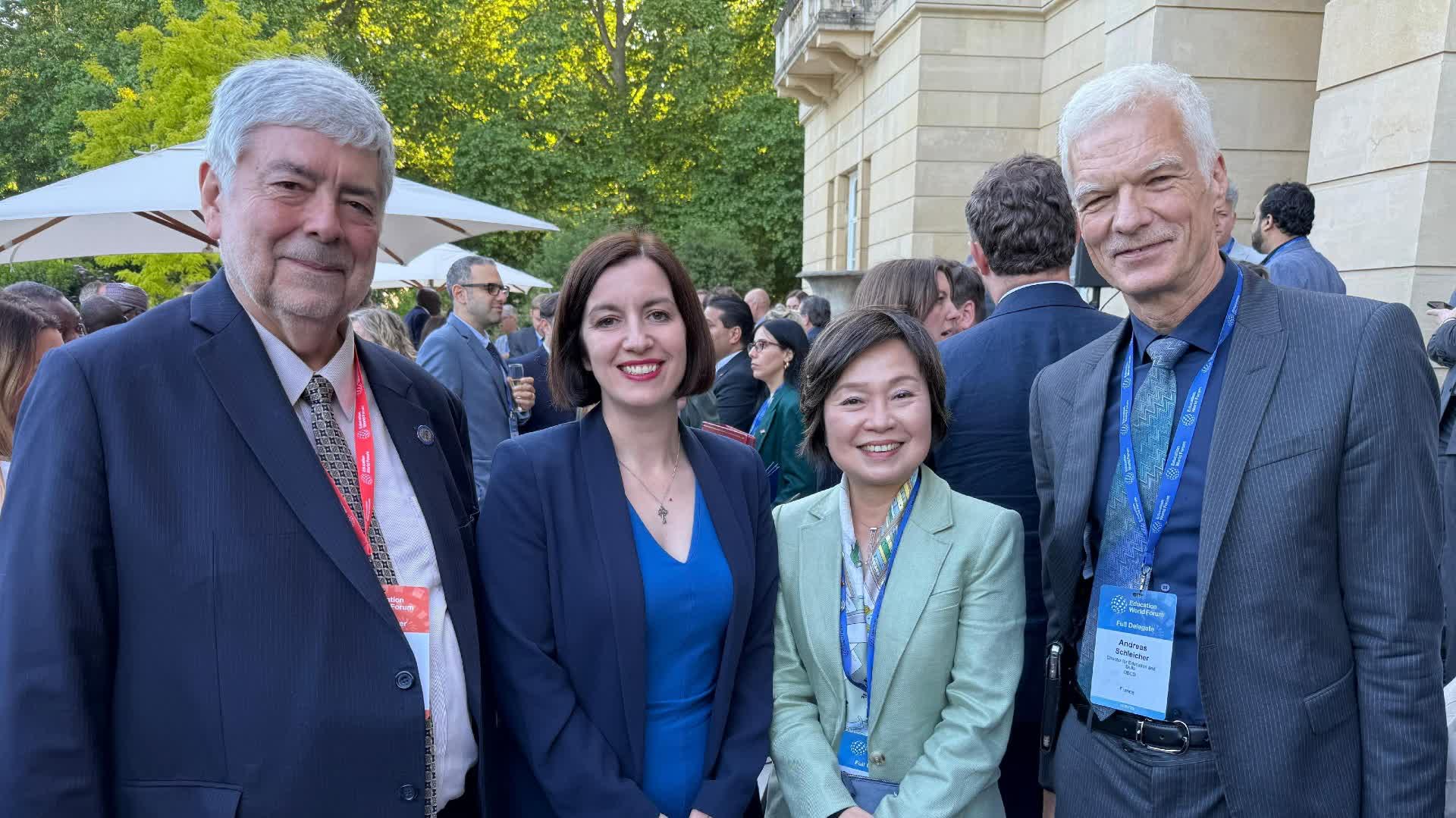 蔡若蓮表示,在實現優質教育方面,香港一直積極參與多項國際評估,以更了解香港學生的能力及影響他們學習成效的關鍵因素。香港學生在學生能力國際評估計劃(PISA)和國際數學與科學趨勢研究(TIMSS)的整體成績均超越國際平均水平,印證學生的優秀能力、學校和教師的教學成效,以及香港教育制度的優勢。教育局十分重視教師的持續專業發展,一直提供多元化的培訓課程,並聯同本地、內地和海外大學舉辦教師專業發展項目,以及提供獎學金鼓勵教師參與海外交流和培訓活動,提升專業能力。