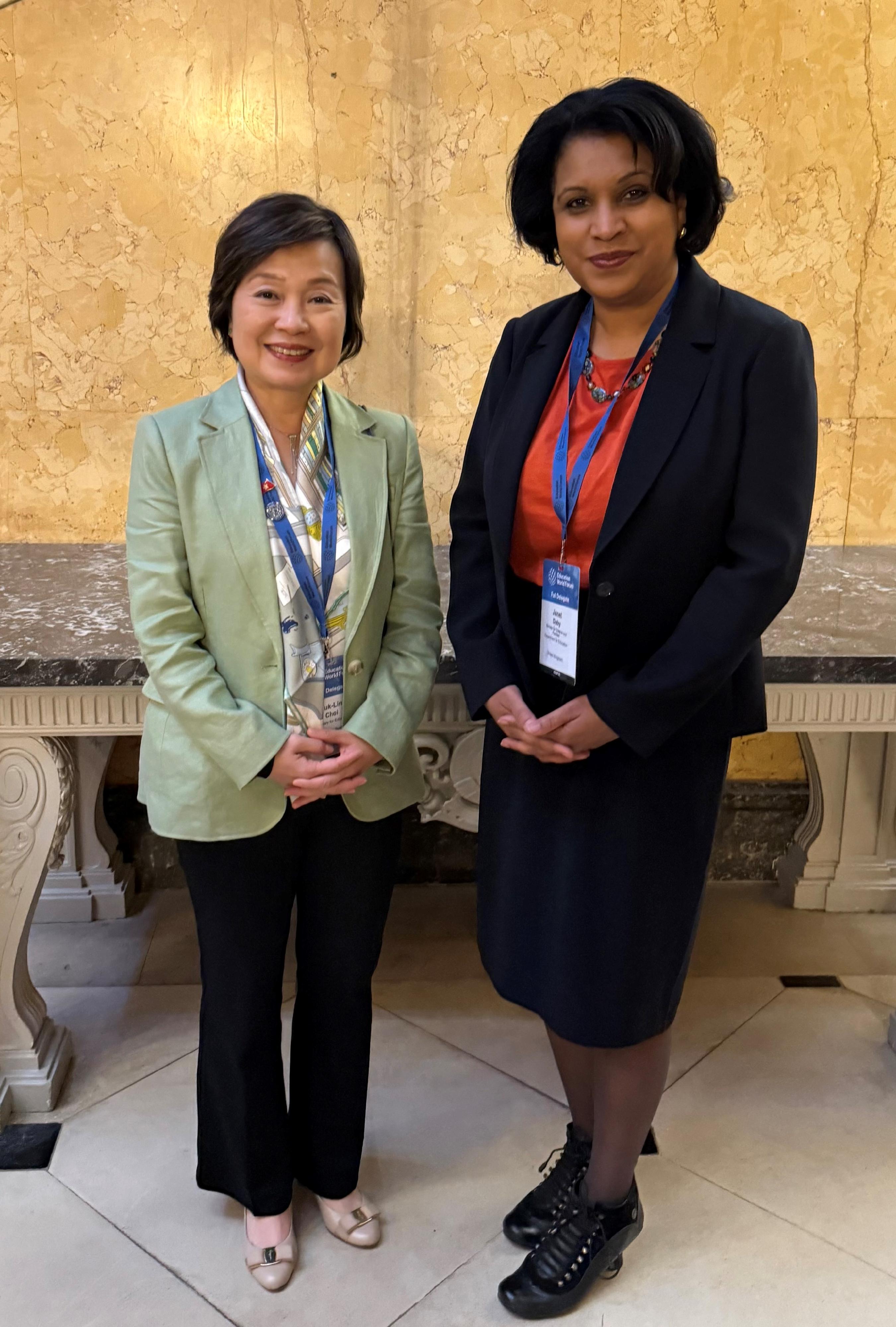 除發表專題演講,蔡若蓮亦與多名英國教育官員會面,商討加強兩地在教育上的交流,包括英國教育大臣方佩芝、英國教育部國務大臣學校標準部長,以及英國教育部政務次官。另外,蔡若蓮亦與出席論壇的烏茲別克斯坦、吉爾吉斯斯坦、巴布亞新幾內亞,以及斯里蘭卡的教育官員會面,探討香港與「一帶一路」國家在教育方面的合作空間。蔡若蓮還與日本文部科學省官員會面,商討加強教育合作交流。