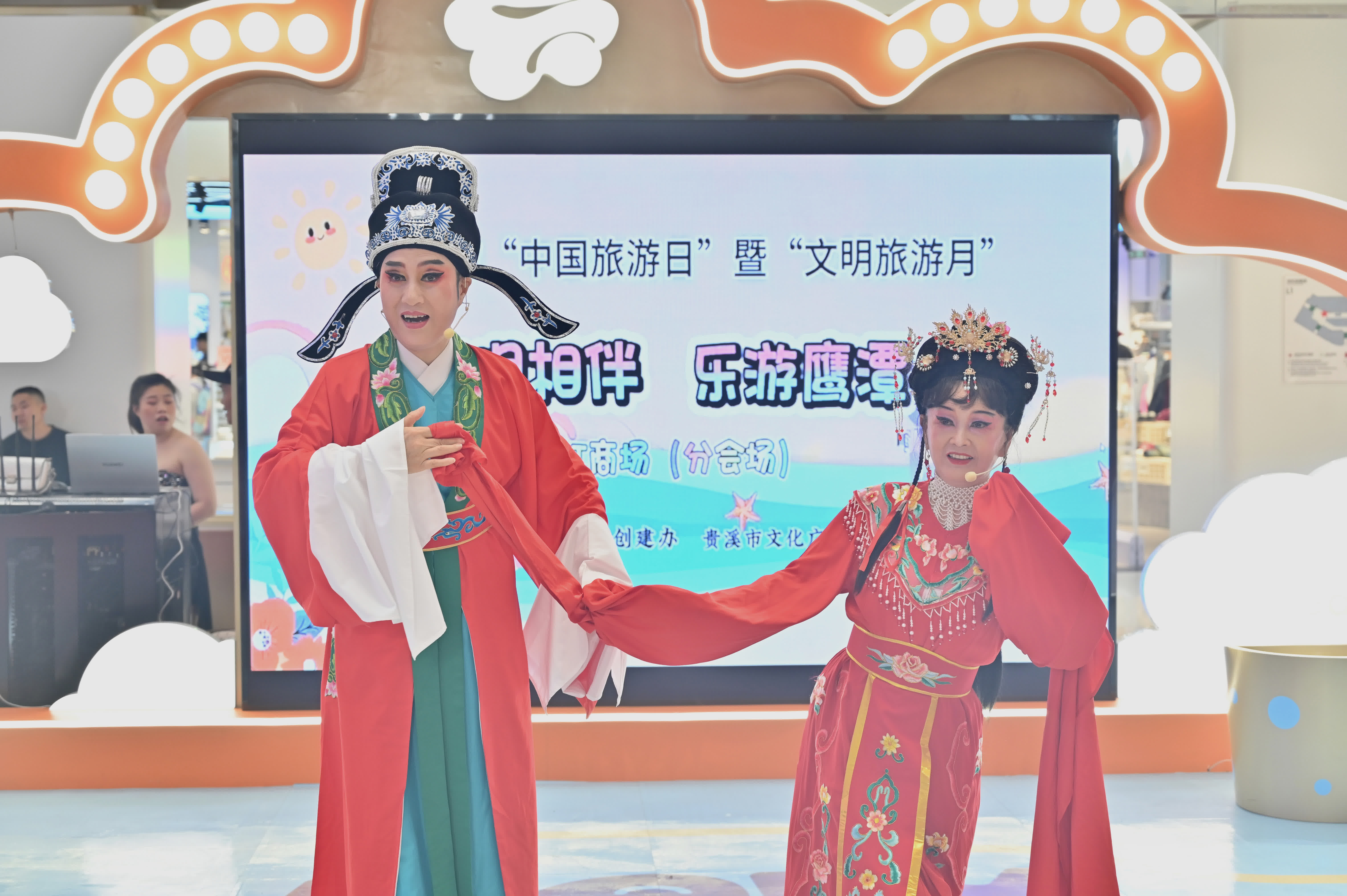 在貴溪市天虹購物商場,一個個精彩的節目輪番上演。舞蹈、話劇、魔術表演、歌曲等巧妙融入了貴溪本地文化特色,獲得了在場群眾的陣陣歡呼。表演中穿插的文明旅遊知識有獎競猜活動,在與現場群眾的互動問答中將現場的氣氛推向了高潮。