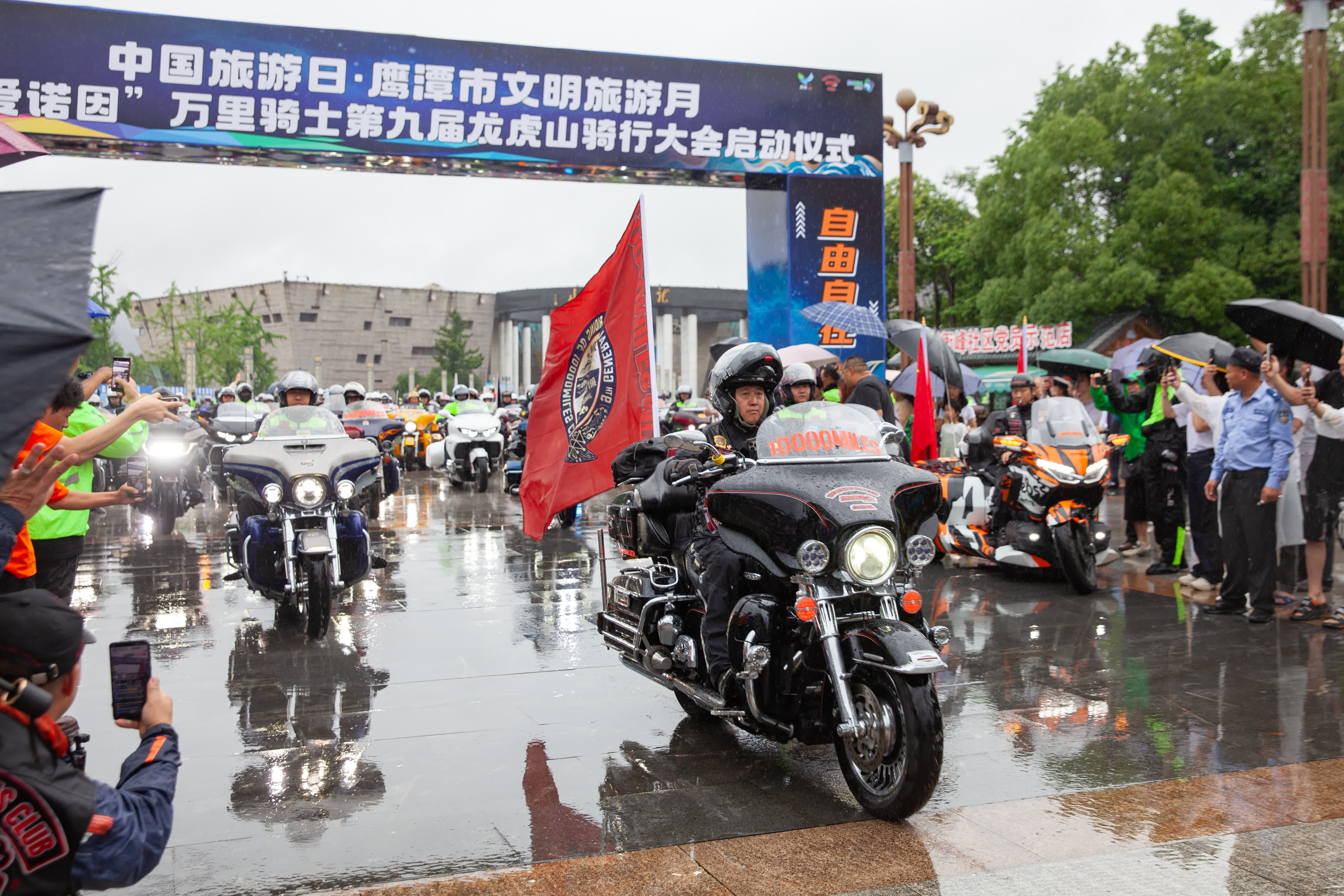 活動當天,在龍虎山景區遊客中心,800餘輛炫酷機車燃情集結。現場,激昂的音樂響徹雲霄,造型各異的炫酷機車整齊陳列,瞬間點燃全場氣氛。隨着發車令下,由800餘輛機車組成的巡遊車隊如蛟龍出海,浩浩蕩蕩地駛向龍虎山深處,盡情領略龍虎山的山水魅力與人文風情。這是一次鋼鐵機械與山水人文的浪漫對話,文明旅遊與速度激情的完美融合。
