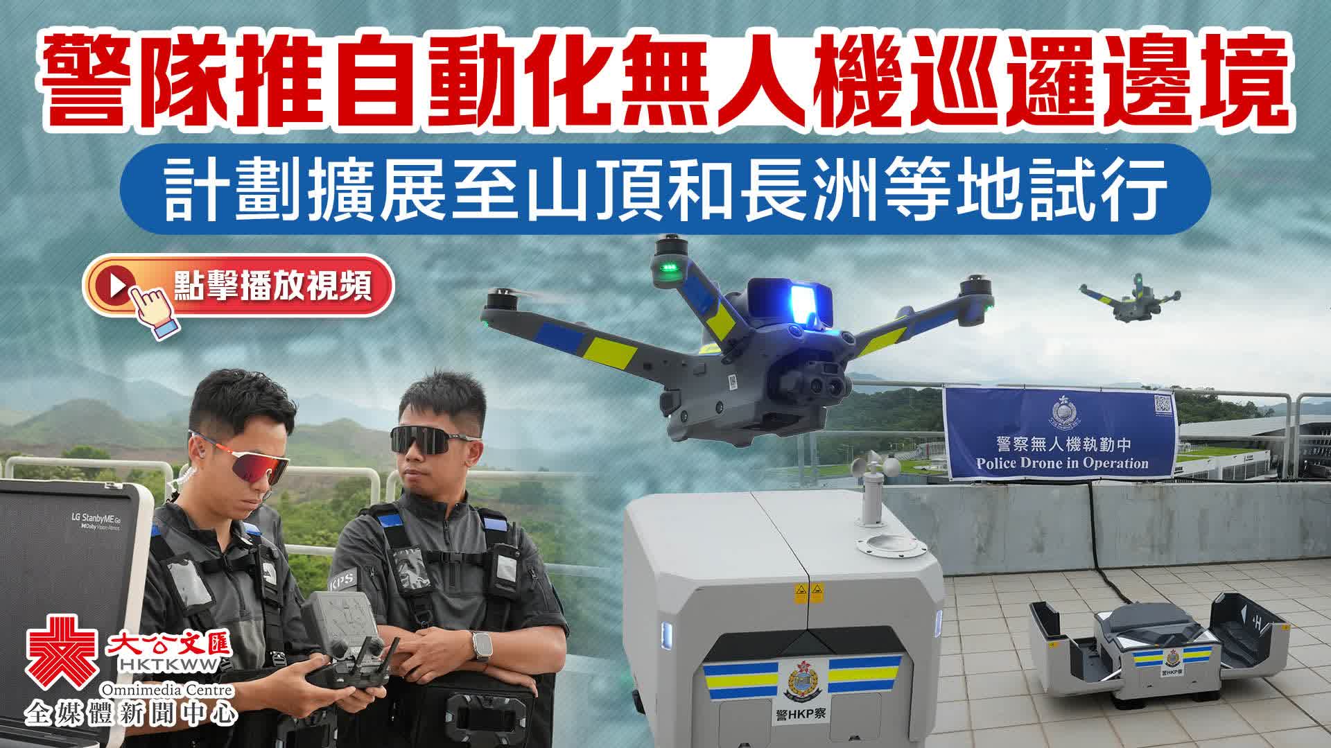 (大公文匯全媒體 記者 王俊傑)警方將於本周五(23日)推出為期三個月的「小型無人機行動調配先導計劃」,包括於邊境試用自動化無人機庫巡邏,以及以無人機於西九龍警區進行反罪惡巡邏。警方表示,首階段完成後,將會在中環山頂和離島長洲等地試行自動化無人機巡邏,長遠而言,計劃在每一個警區配備相關系統,加強執法效能。大型活動科重點及搜查組警司高仲英表示,警方會對計劃選址進行綜合評估,當中包括地形特色、行動需要、網絡訊號等條件,再分執行優次,務求更有效地調配,做到事半功倍。