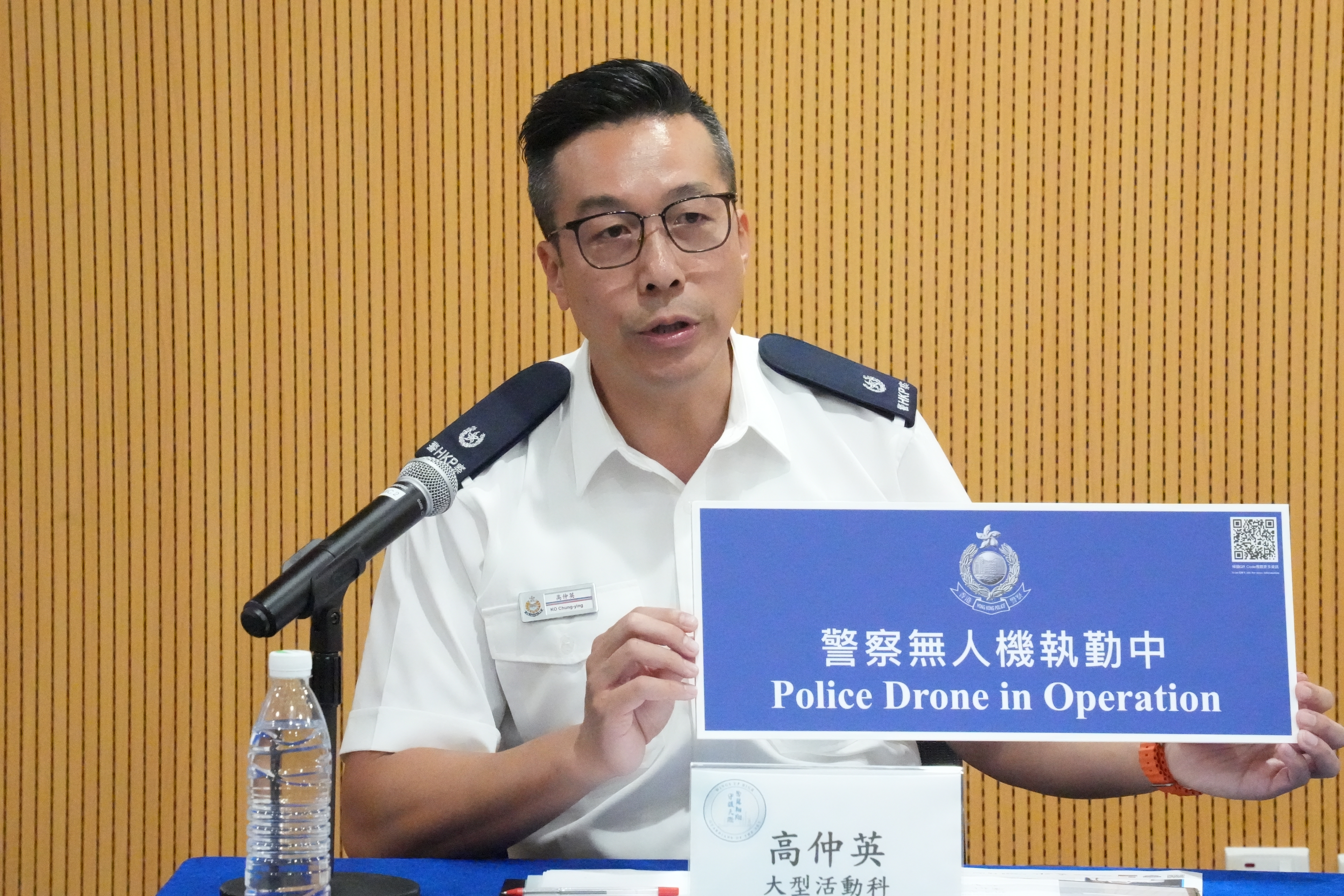 被問到無人機的功能,高仲英解釋,警方會按行動需要配備熱成像、夜視鏡等裝備,日後會搭配人工智能的分析功能,例如,人流及車流統計、地面物品位置等等,以豐富執法人員在行動與科技上的支援。他重申,現階段暫時未有計劃使用人臉識別系統。