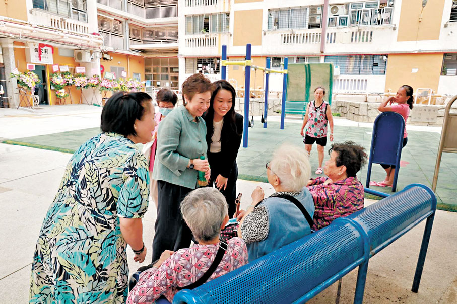 王惠貞有「人生三段」哲學:人生0歲至25歲以教育為先;26歲至50歲以發展為重;年過50要回饋,並提升個人成長,故她現在把七成時間及精力都投入到公共及社會服務之中。黃文莉去年被委任為九龍城區區議員,傳承了母親王惠貞對地區事務的熱忱,從黃文莉提供給香港文匯報的照片看到,母女倆會一起落區與社區居民交流。