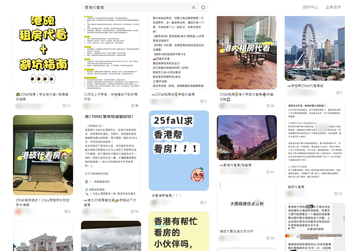 來自上海的印同學,目前在香港中文大學就讀研究生課程,她告訴記者,在租住現在的房子前,她們找了兩個人代看了幾間房才決定下來。「當時是準備在香港租房,在社交平台上搜索過租房情況,可能被大數據捕捉到,就開始給我推送代看房的帖子了。因為我們覺得租房還是要看下實體情況,怕被中介或房東坑,所以就去相關帖子問了一下。」
