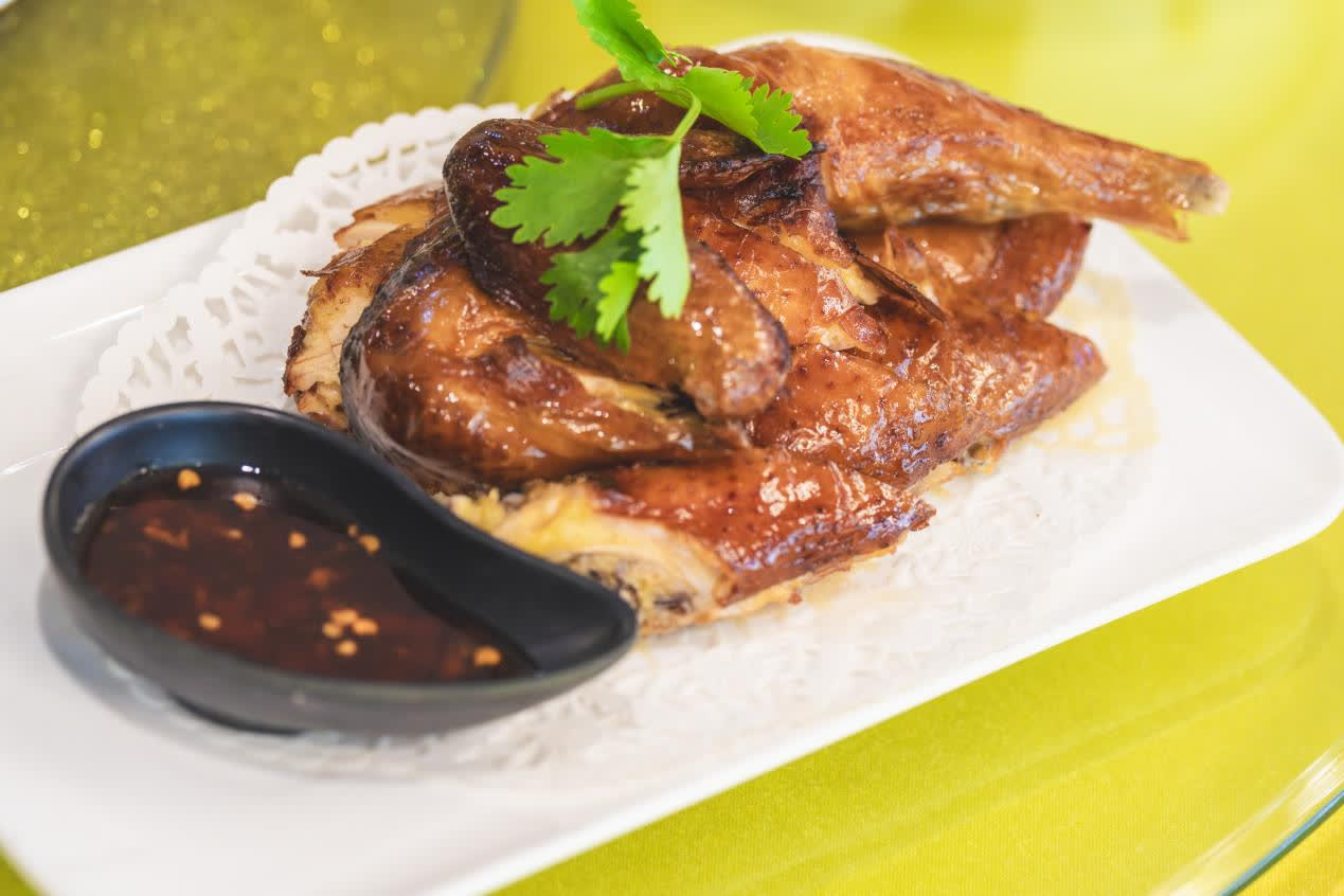 一道原創菜品「印尼娘惹吊燒雞」,是融合印尼烤雞的腌制調料和港粵吊燒雞的雞皮處理手法。成品香脆多汁南洋風味突出,食客品嘗後讚不絕口評為經典,一直穩居餐廳人氣菜品前三。